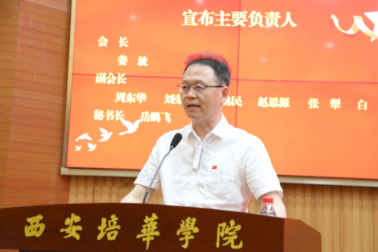 会议选举西安培华学院理事长姜波担任会长;选举西北大学新闻与传播学院教授周东华、西安培华学院艺术教育中心主任、教授刘荣弟、西安歌舞剧院舞蹈团原团长、陕西师范大学音乐学院副院长程鹏民、西部电影集团演员、导演、制片人赵思源、西安美术学院设计学院院长张犁、西安博雅艺联教育集团理事长白帆担任副会长、西安蓝艺艺术培训学校校长岳鹏飞担任秘书长;选举西安水墨博雅教育负责人刘鹏担任监事。