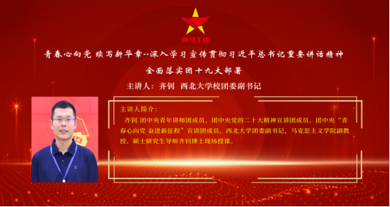讲座中,齐钊老师以习近平总书记在同团中央新一届领导班子成员集体谈话时提到的“青年人有理想、敢担当、能吃苦、肯奋斗,中国青年才会有力量,党和国家事业发展才能充满希望”为切入点,激励全体学员和团员青年坚定理想、勇担使命、不畏困苦、不懈奋斗。他带领学员们学习领会党中央致词精神,从坚定理想信念、勇担时代重任、发扬斗争精神、保持奋斗激情这四点出发,激励学员和团员青年们在国家重大战略和重大任务中担当历练,勇做走在时代前列的奋进者、开拓者。他最后强调,“青马工程”培训班的全体学员和团员青年要知行合一、学以致用、深学笃行贯彻落实习近平总书记重要讲话精神,要在强国建设、民族复兴伟业中挺膺担当,把个人理想融入党和国家事业之中,在努力学习中增强能力本领,在实现中国梦伟大实践中矢志不渝、努力奋斗。