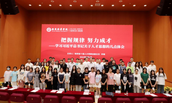 6月1日下午,省十届人大常委会副主任邓理应邀来校为师生作了《把握规律、努力成才——学习习近平总书记关于人才思想的几点体会》报告,陕西省工商联原主席冯钧平,学校理事长姜波,党委书记罗新远,党委副书记、副校长姚文静等师生代表200余人现场聆听了报告会。党委书记罗新远主持报告会。