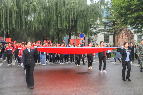 百名师生代表、民主党派代表、校友代表组成的12个方阵以饱满的热情传递红旗,歌颂盛世