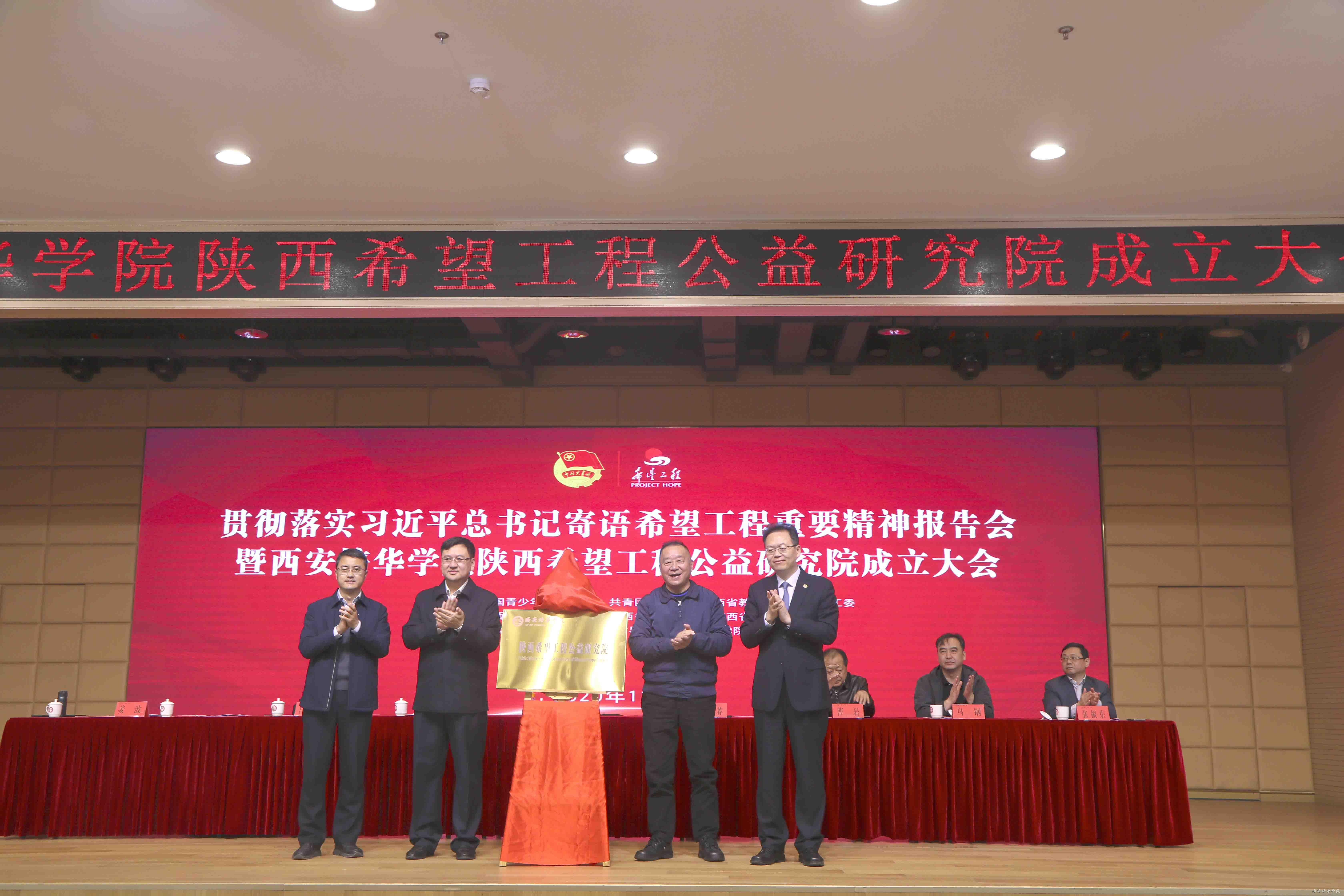 为学习贯彻落实党的十九届五中全会精神,进一步深入学习贯彻落实习近平总书记对希望工程寄语精神,推动新时代陕西希望工程事业发展,11月20日上午,由共青团陕西省委、陕西省青少年发展基金会、西安培华学院等单位联合举办的贯彻落实习近平总书记寄语希望工程精神报告会暨西安培华学院陕西希望工程公益研究院成立仪式在西安培华学院举行。