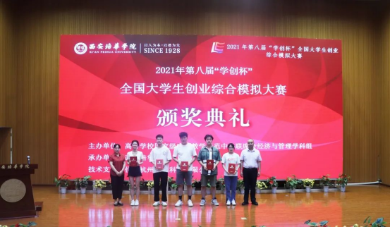 大赛在维之图书馆报告厅举行了赛事颁奖典礼。西安培华学院、陕西职业技术学院、西安建筑科技大学等8所高校获得优秀组织奖。陕西国际商贸学院、西安财经大学、西安交通大学城市学院等高校的8支代表队获得主体赛本科组特等奖;西安建筑科技大学、陕西国际商贸学院、陕西科技大学等高校的14支代表队获得主体赛本科组一等奖;西安培华学院、西安信息职业大学、西北农林科技大学等高校的20支代表队获得主体赛本科组二等奖;西安信息职业大学、西安外事学院等高校的3支代表队获得主体赛专科组特等奖;西安培华学院、陕西职业技术学院、西安航空学院等高校的5支代表队获得主体赛专科组一等奖;西安外事学院、西京学院、西安职业技术学院等高校的7支代表队获得主体赛专科组三等奖;西安邮电大学、西安建筑科技大学、陕西科技大学等高校的6支代表队获得专项赛特等奖;西安工程大学、西北政法大学、西安外国语大学等高校的12支代表队获得专项赛一等奖;西安交通大学城市学院、西安工程大学、西安航空学院等高校的18支代表队获得专项赛二等奖。
