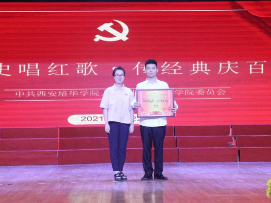 人文与国际教育学院王飞书记在大赛开始前的致辞中谈到,在中国共产党成立100周年之际,此次红歌比赛是党史学习教育一个非常重要的部分,通过本次红歌比赛,让广大学生学习无私奉献的精神力量,并把这些力量融入到日常的学习生活中去,让思想提上来,让学习深下去,让未来变得明亮起来。同时希望培华师生能通过红歌比赛,进一步加强党史学习教育,强化学史明理、学史增信、学史崇德、学史力行,让党史学习教育走深走实,为祖国的繁荣富强不断奋斗。