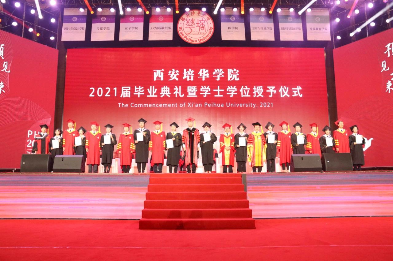 来时青春年少,去时繁花似锦。7月10日上午,西安培华学院在体育馆举行2021届毕业典礼暨学位授予仪式。全体校级领导、学位委员会委员、全体中层领导、教师代表、辅导员代表、毕业生家长代表、校友代表、2021届毕业生代表三千余人参加。