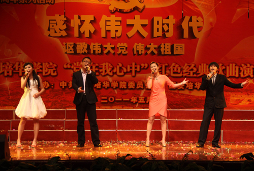 为庆祝中国共产党建党90周年,讴歌伟大的党和伟大的祖国,我校举行了一系列庆祝活动。5月20日下午,我校在长安校区大学生活动中心举行“党在我心中”红色经典歌曲演唱会,表达对党的热爱和伟大祖国的歌颂。我校院长陈明华,党委书记王斗虎,副院长杨定君、王根性、刘应南、王拴才等领导以及师生代表1000多人共同观看了演唱会。