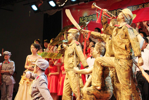 在全体师生共同合唱的《中华人民共和国国歌》和《没有共产党就没有新中国》两首歌曲后,文法学院罗佳等人表演的《今天是你的生日》大型舞蹈拉开了演唱会的序幕。本场演唱会由“红色记忆”、抗战烽火”、凯歌嘹亮”和“精神丰碑”四个乐章组成。