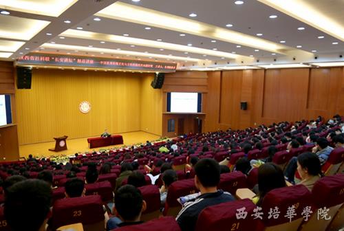 3月18日下午,维之图书馆报告厅座无虚席。由省社科联主办,西安培华学院社科联承办的2015年“长安讲坛”精品讲座首场报告会在这里举行。西安市社会科学院科研管理处处长、西安市社会科学规划基金管理办公室主任朱利民教授带来主题为“中国优秀传统文化与文化传统相关问题研究”的讲座。他精彩且富有内涵的阐述,引发在场500余名师生的强烈共鸣。