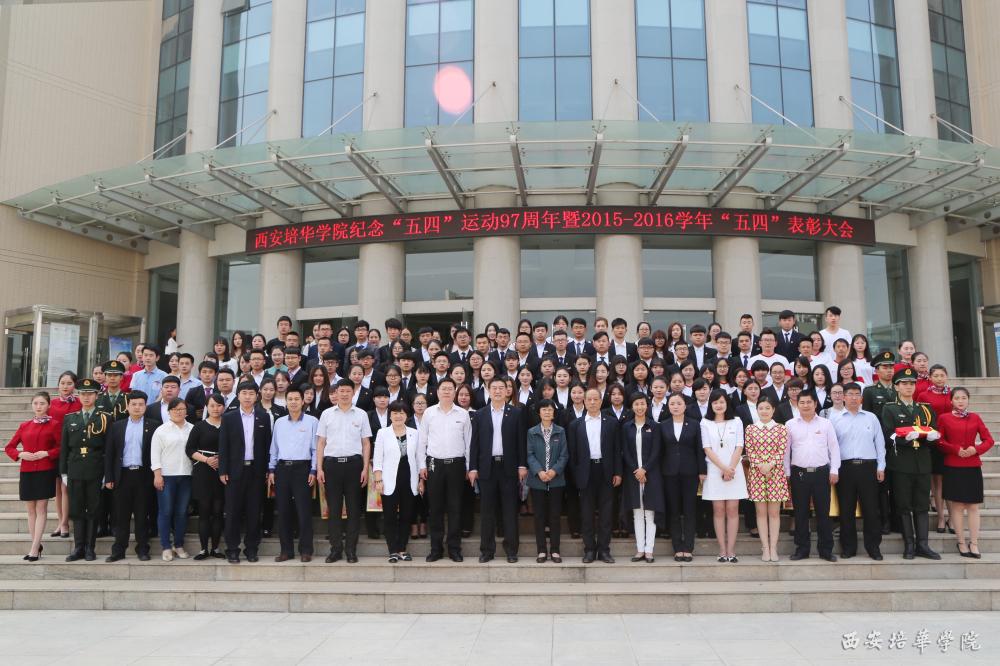 5月4日,我校在维之图书馆隆重召开纪念“五四”运动97周年暨2015-2016学年“五四”表彰大会,陕西省青年联合会副主席、我校理事长姜波,校长王拴才,党委书记周庆华,副校长兼党委副书记姚文静、徐国富出席表彰大会。各二级学院团总支,优秀团员代表500余人参加大会。会议由团委书记王翠主持。