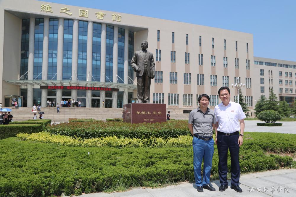 教育部学校规划建设发展中心陈锋主任与我校姜波理事长合影留念