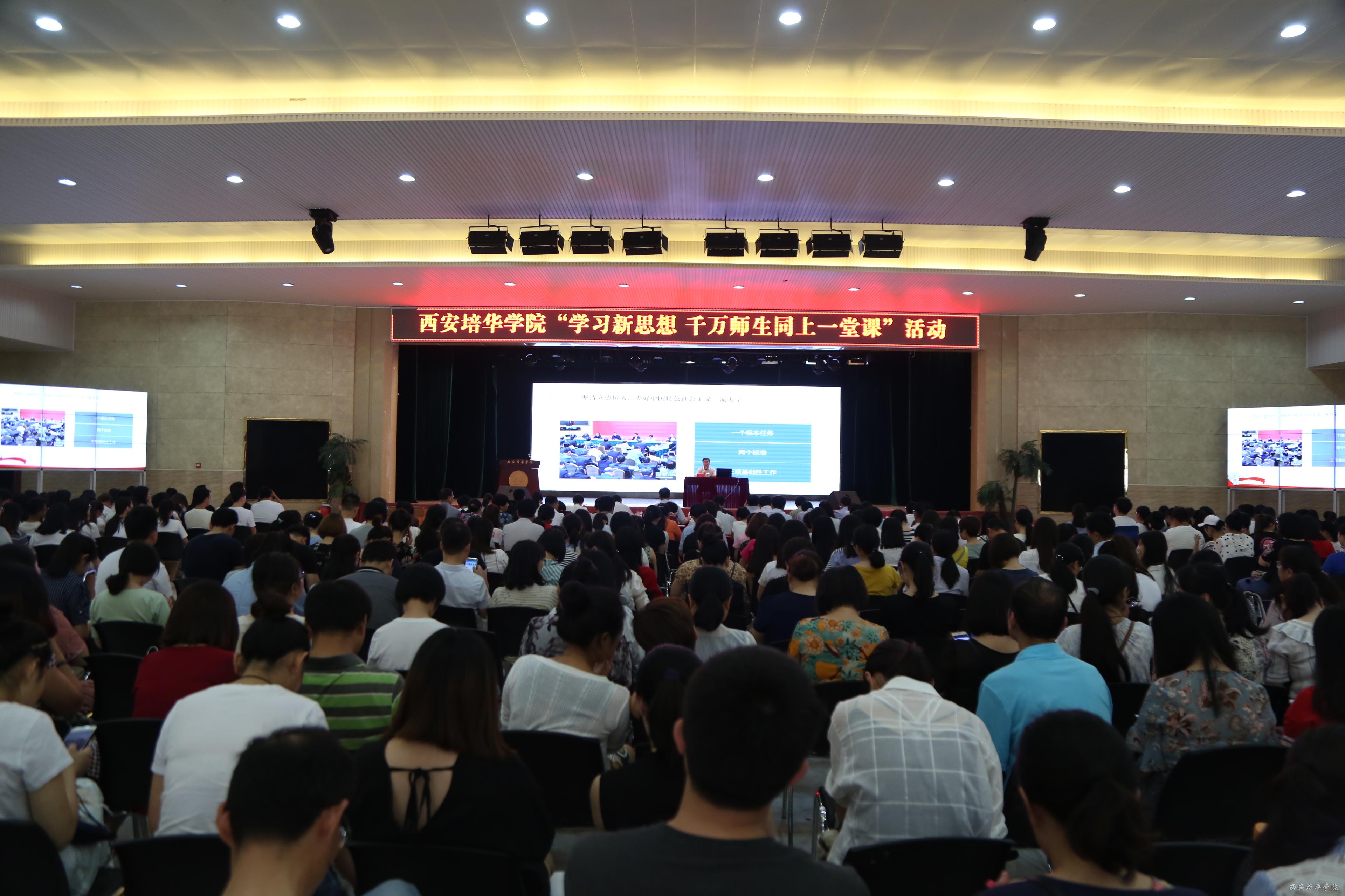 为了深入学习宣传贯彻习近平总书记在北京大学师生座谈会和纪念马克思主义诞辰200周年大会上重要讲话精神,按照教育部、省委高教工委工委部署要求,6月15日,西安培华学院举办了“学习新思想千万师生同上一堂课”活动,全校师生党员千余人参加了活动。