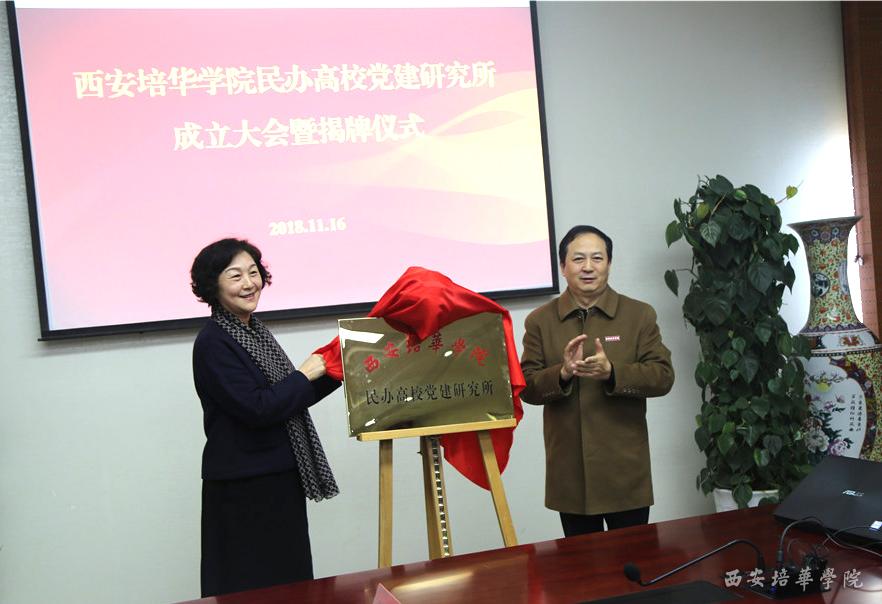 随后,徐国富宣读了《中共西安培华学院委员会关于成立民办高校党建研究所的通知》;姚文静宣读了校党委《关于成立西安培华学院民办高校党建研究所的批复》。党委书记胡俊生与副校长刘越莲共同为研究所揭牌。
