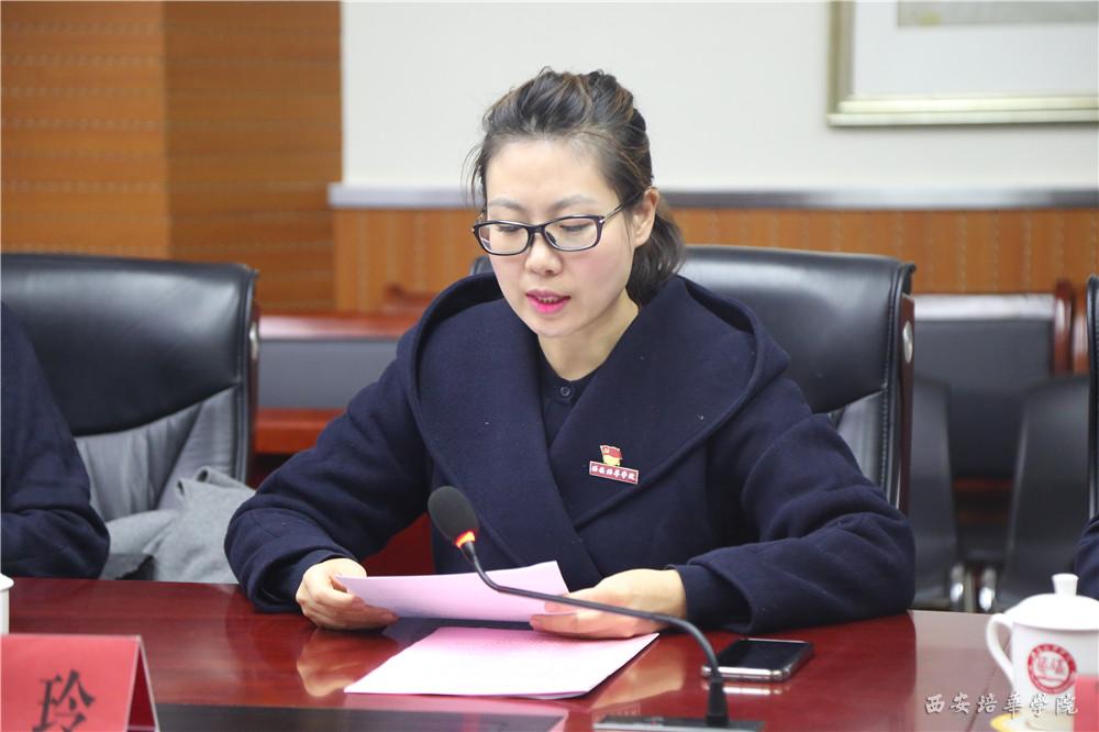 党委工作部部长陈玲宣读《关于申报西安培华学院党建研究所项目的通知》(拟定稿)