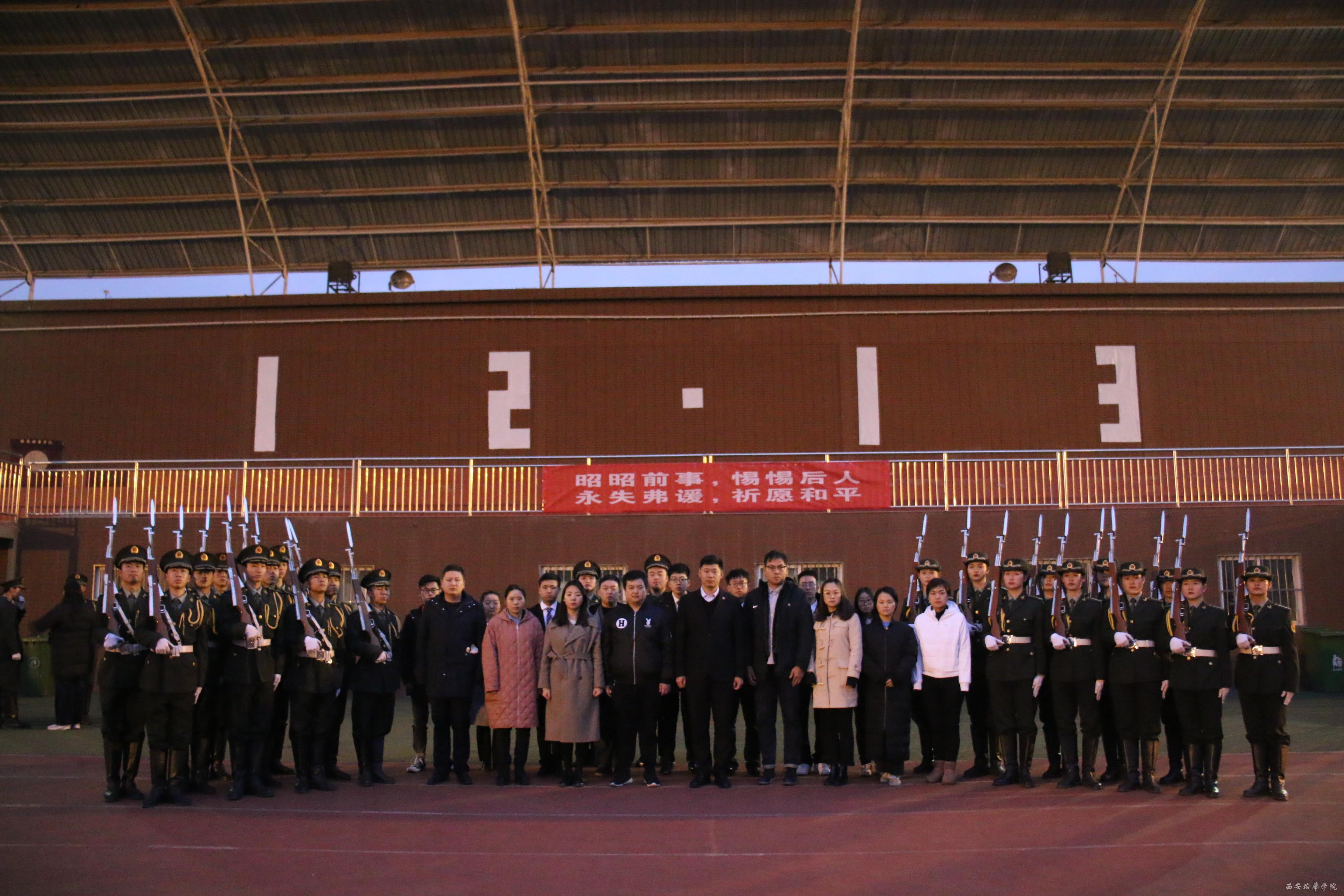 2019年12月13日作为第六个南京大屠杀死难者国家公祭日,为号召广大师生缅怀先烈、铭记历史,表明当代大学生反对侵略,热爱和平的的态度与立场。激发广大师生爱国热情,凝聚实现中华民族伟大复兴而不懈奋斗的正能量。共青团西安培华学院委员会分别于上午6点在操场,中午12点在维之图书馆广场前开展“12.13”国家公祭日系列活动。