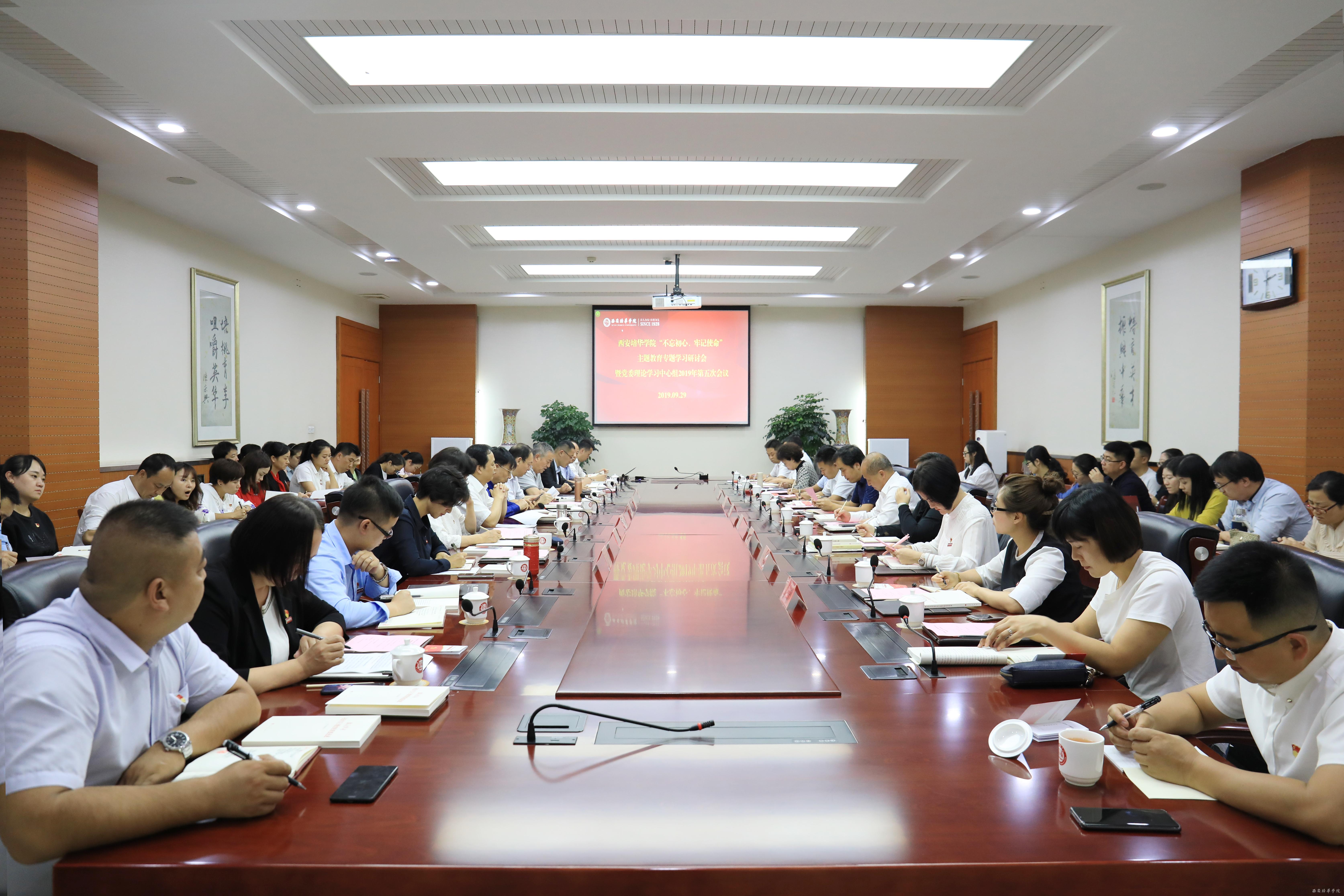 党委副书记徐国富谈到:本次“不忘初心、牢记使命”主题教育我们要作为重大政治任务抓实抓细抓好,要根据我们自身工作,查摆存在的突出问题,并立即整改,主题教育成果要不断深化,要一鼓作气坚决按照中央部署要求和省委安排,高质量做好“不忘初心、牢记使命”主题教育,确保取得师生满意的成效,以优异的成绩庆祝新中国成立70周年。