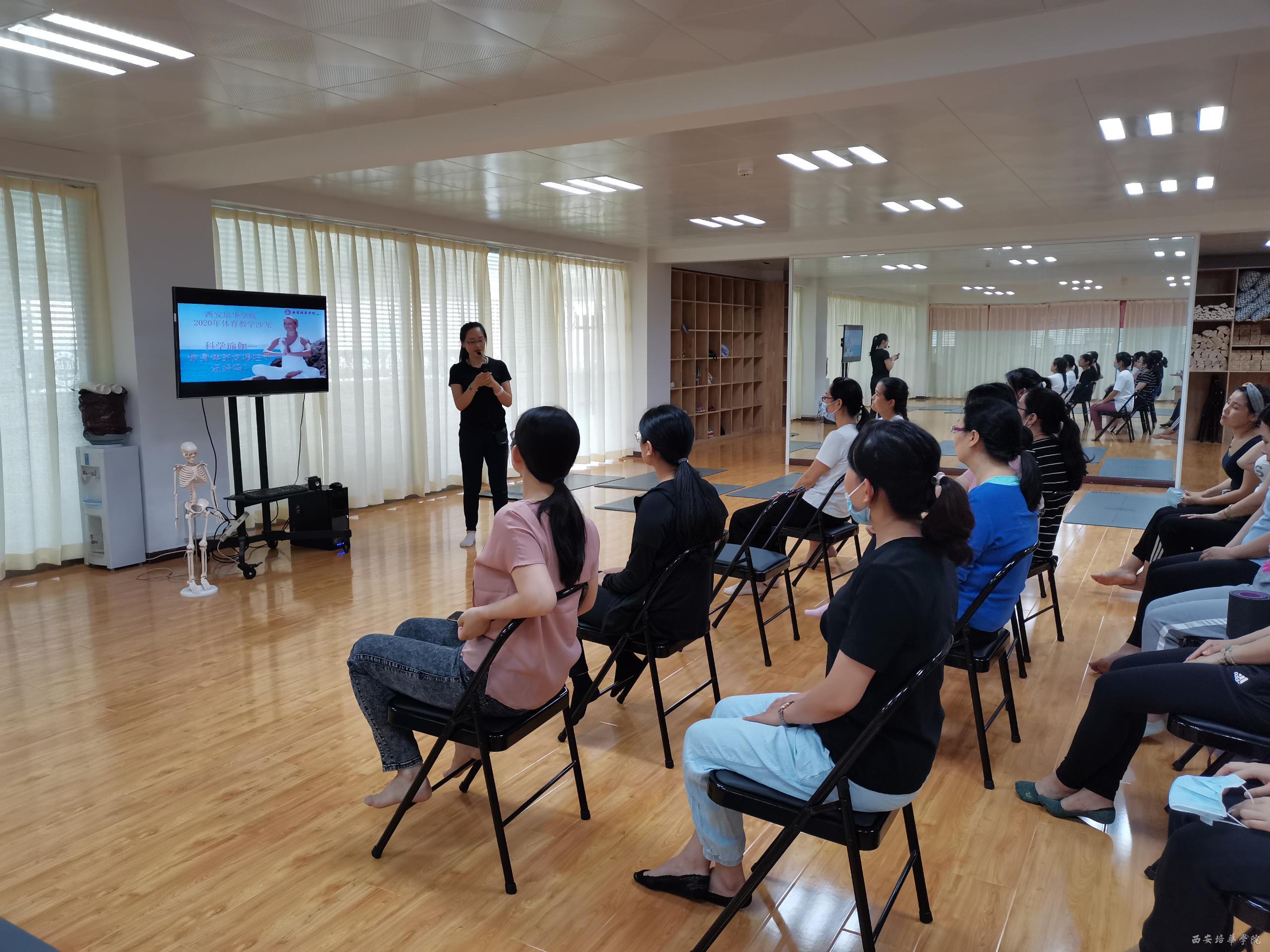 6月12日下午,由教师发展中心主办、体育中心承办的第十期教学沙龙在明德楼三楼东侧科学瑜伽室进行,这也是本年度最后一期教学沙龙活动。来自各院系、各部门的近30名教职工纷纷积极报名参加“科学瑜伽”。此次沙龙的主持人是体育中心副主任马德厚副教授,之后则由体育中心瑜伽俱乐部主任孙焕梅老师为我们解说和展示了“科学瑜伽”的理念和宗旨。