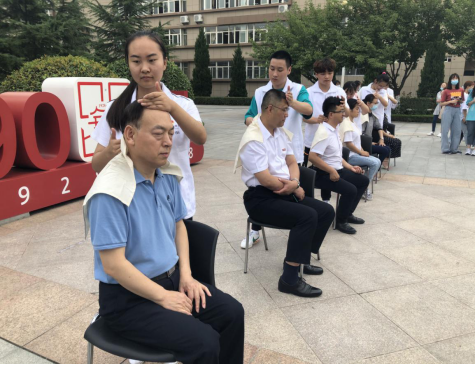 党员志愿者为我校师生现场进行中医按摩并进行血压测量服务