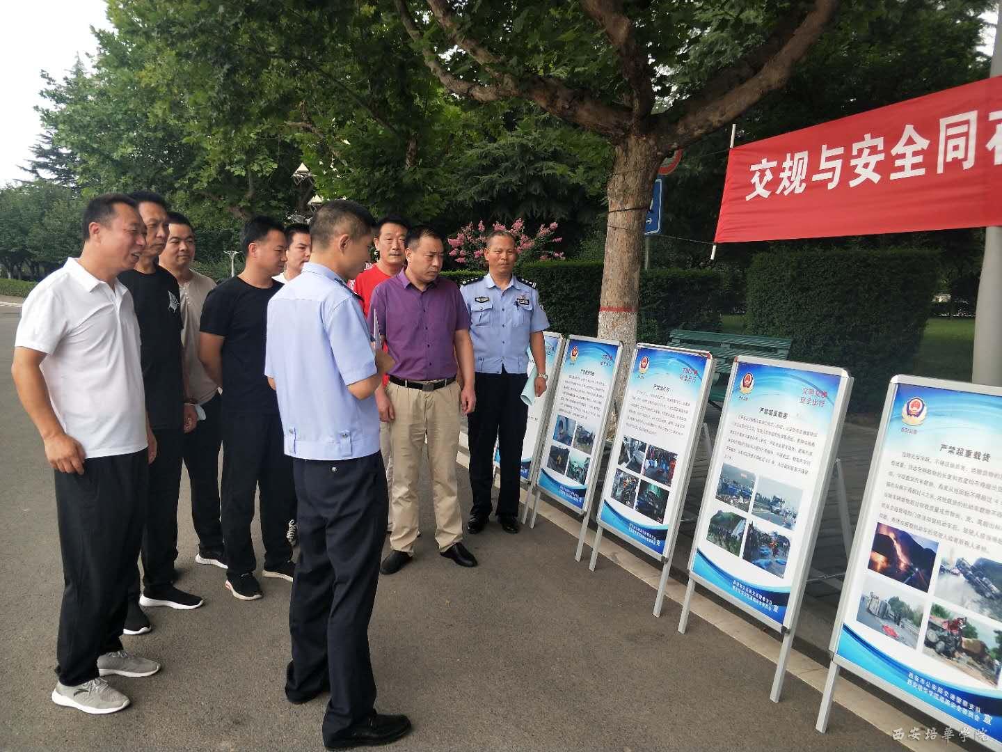 7月10日上午,西安交警高新大队安监科科长黄旭、民警吕卫鹏一行来我校检查校车队安全隐患排查工作,后勤服务中心主任助理李文生、校车队队长刘小明及全体车队驾驶员陪同检查。
