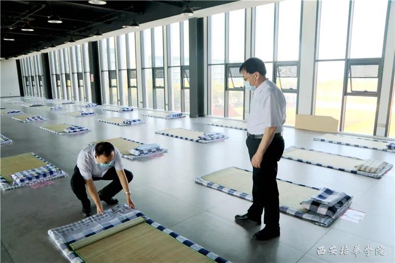 校长李映方,党委书记罗新远等走进家长临时休息区,除了询问迎新工作,还走到临时床铺旁,用手摸一摸被褥的厚度,担心家长会睡的不舒服。他们说:“家长辛苦把孩子送到培华,我们就要为他们提供最好的服务。”