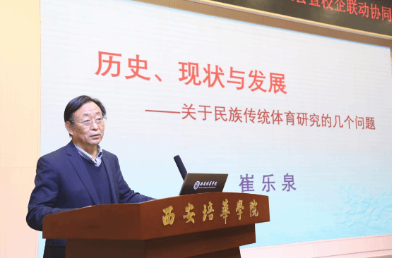 成立仪式后,研讨会围绕“校企联动协同育人”的核心主题展开。国家体育总局体育文化发展中心研究员崔乐泉教授以《历史、现状与发展——关于民族传统体育研究的几个问题》为题,梳理了民族传统体育的传承脉络与当代发展路径。