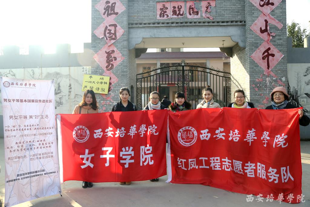 西安培华学院科普小分队男女基本国策宣传进社区活动