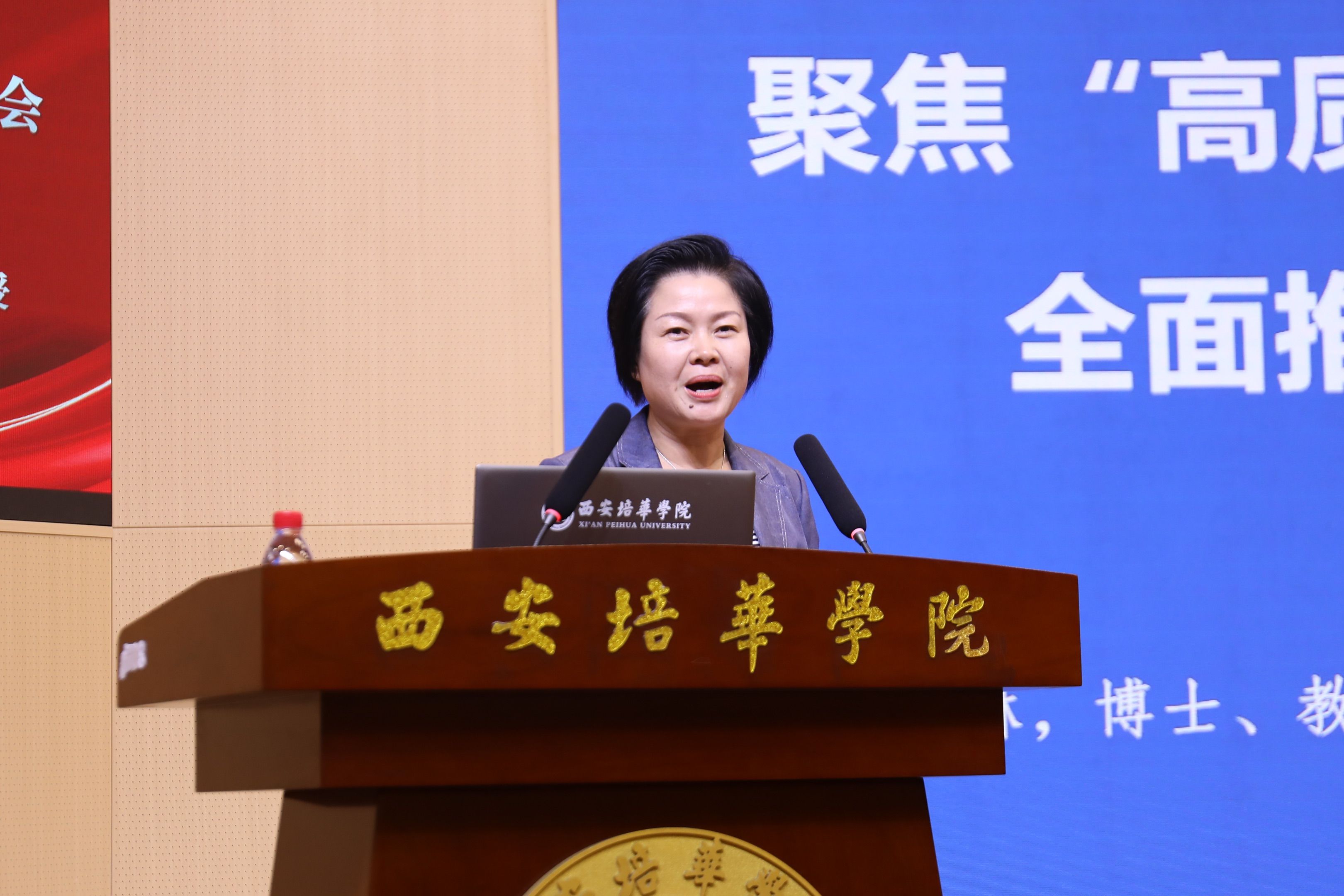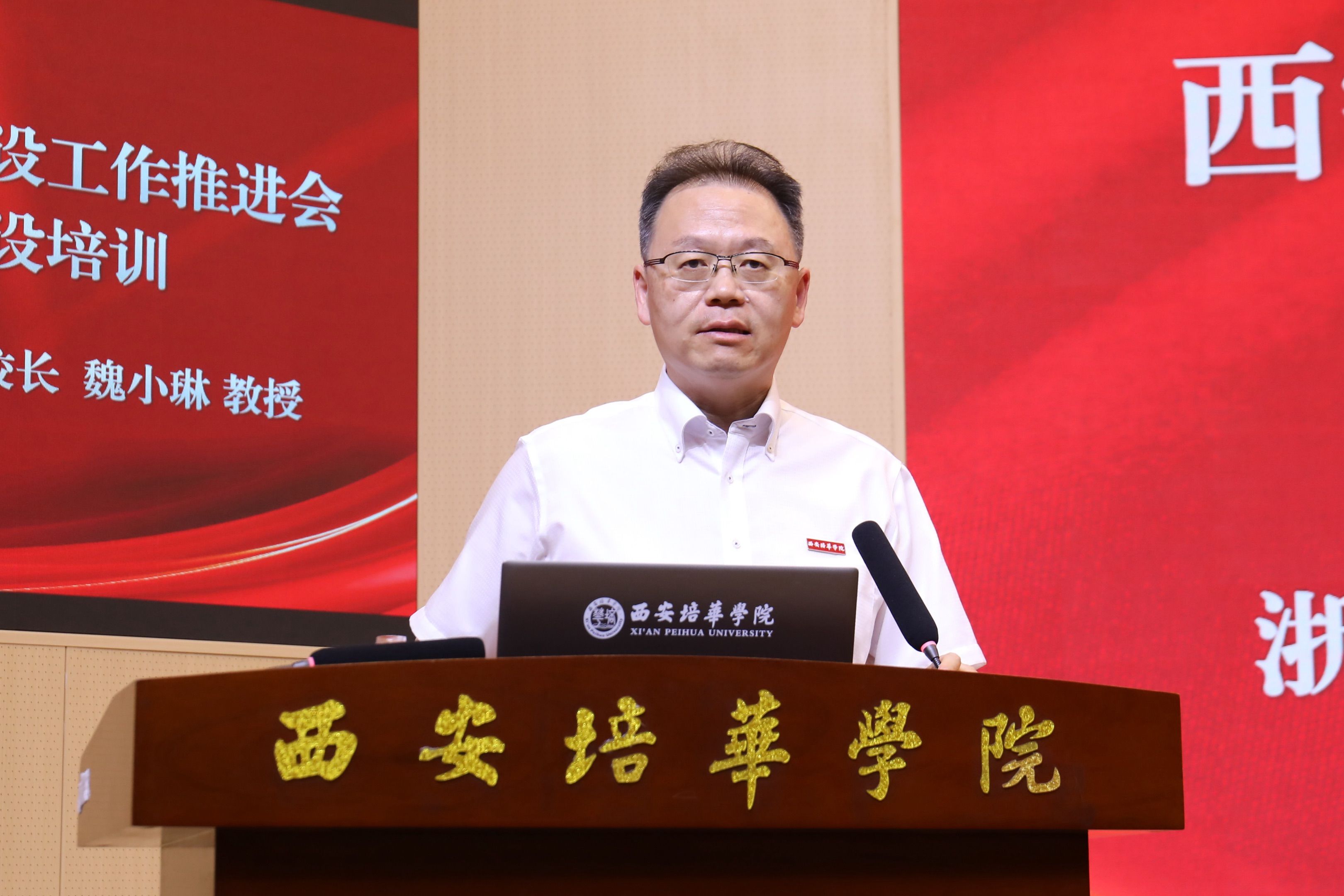 6月13日下午,西安培华学院“学科建设工作推进会暨学科专业建设培训”在明德楼报告厅举行。本次会议由科研管理中心主办,人文与国际教育学院承办,旨在深入贯彻高等教育高质量发展要求,系统推进学科建设与申硕工作,凝聚全校力量推动内涵式发展。理事长姜波、校长李映方、副校长姚文静、校长助理鲍伟,各二级学院院长(常务)、负责学科专业建设、申硕工作的副院长(院长助理)、申硕建设点骨干教师,职能部门主任、副主任(主任助理),教务、战略、质控部门、督导部门人员,教师代表等200余人参加会议。副校长罗新远主持会议。