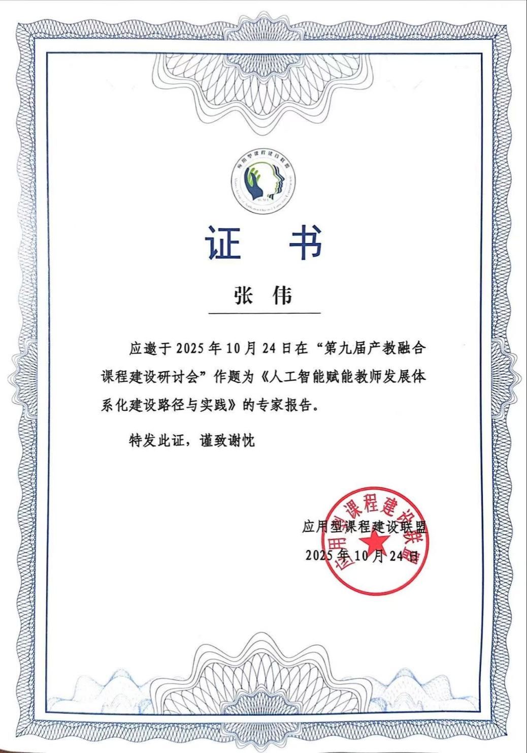 10月24日,由应用型课程建设联盟主办的“第九届产教融合课程建设研讨会”在长沙市开幕。西安培华学院教师教学发展中心主任张伟教授应邀出席,并以《人工智能赋能教师发展体系化建设路径与实践》为题作大会专家报告,来自全国近百余所本科、职业院校的教师代表到场聆听。
