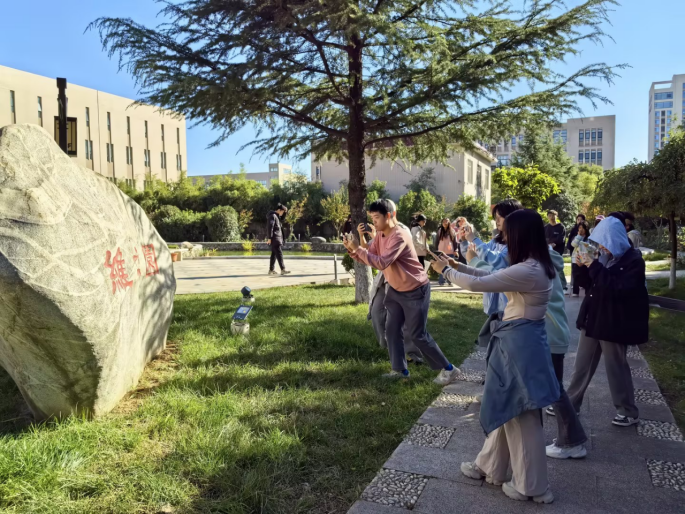 市场营销专业课程学生在户外开展手机摄影实训