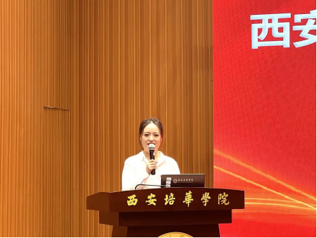 党委学工部副部长杨媛宣读《关于组织开展西安培华学院第十八期辅导员在职培训的通知》