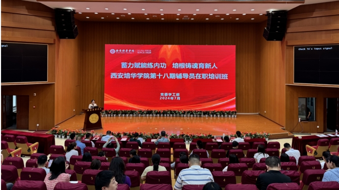 在开班仪式上,党委学工部副部长杨媛宣读了《关于组织开展西安培华学院第十八期辅导员在职培训的通知》,对整体培训做了工作安排,针对培训过程中的纪律进行了强调。智能科学与工程学院辅导员高珊珊针对本次培训进行了表态发言。她从“把握机会,明确目标,促进自身发展”、“ 提高认识,严格纪律,遵守各项制度”、“学以致用,理论联系实际,提高工作效率”三个方面明确了自身的学习目标,并号召全体辅导员够潜心学习,深耕钻研,在引领学生成长成才、守望学生发展的同时,努力成为职业发展的行家里手,在职业发展的道路上勇敢走出一片属于自己的绚丽与精彩。最后校党委书记刘锋做培训动员讲话,他希望本次培训能为辅导员带去有效的指导和帮助,也希望大家接下来的时间带着问题,带着思考,带着一颗平静的心,投入培训,投入学习。