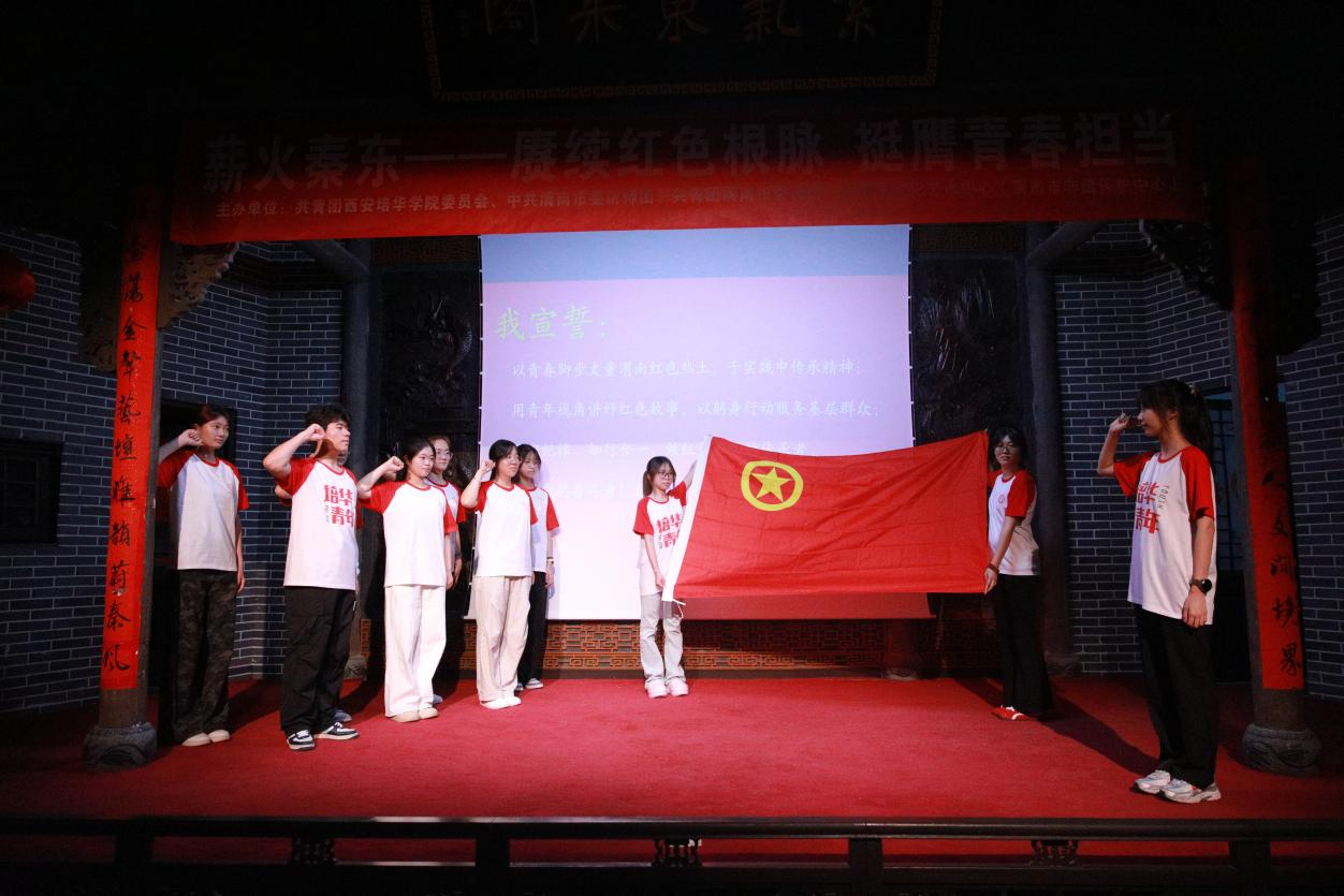全体实践队员面向团旗庄严宣誓:“以青春脚步丈量渭南红色热土,于实践中传承红色精神,用青年视角讲好红色故事,以躬身行动服务基层群众,让青春在赓续薪火中闪光!”铿锵誓言彰显了知行合一、服务人民的坚定决心。