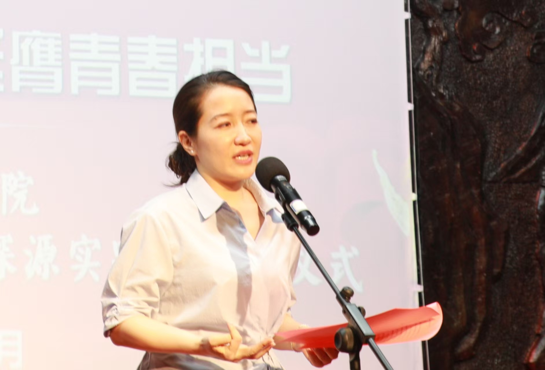 7月7日下午,西安培华学院“薪火探源”实践队大学生暑期“三下乡”活动启动仪式在渭南市文化艺术中心举行。共青团渭南市委副书记王晶晶、渭南市文化艺术中心主任田建、中共渭南市委讲师团副团长杨剑秋等相关负责人,西安培华学院党委副书记蔡亮、党委宣传部副部长霍元敏,“薪火探源”实践队指导教师李雯、张明霞、黄蓉等人参加活动。西安培华学院马克思主义学院副院长寇军强主持。