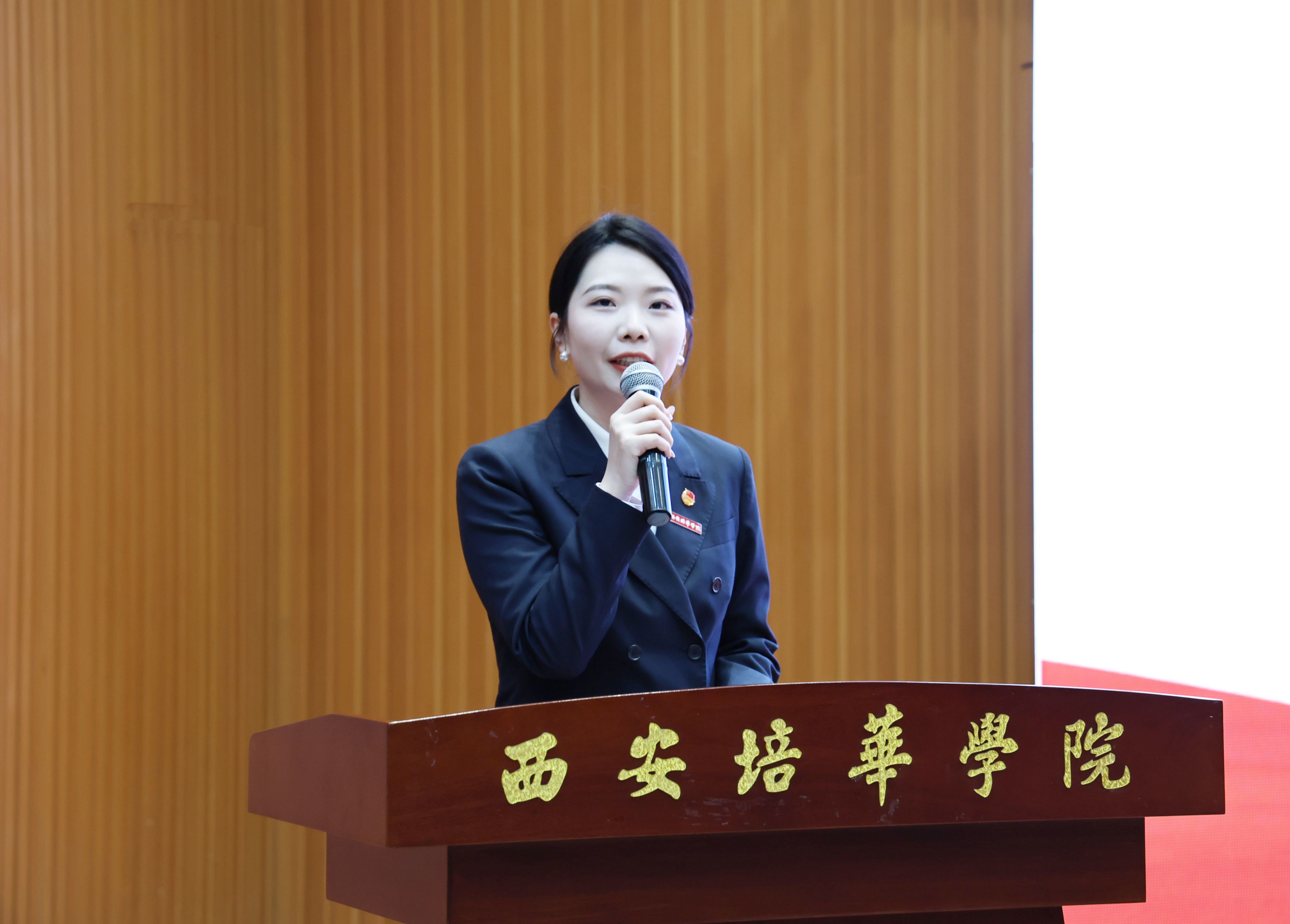 校团委书记董莹老师宣读《西安培华学院关于表彰2025年寒假“五育并举”返家乡系列社会实践活动优秀组织单位、示范(标兵)团队、优秀指导教师、先进个人的通报》。