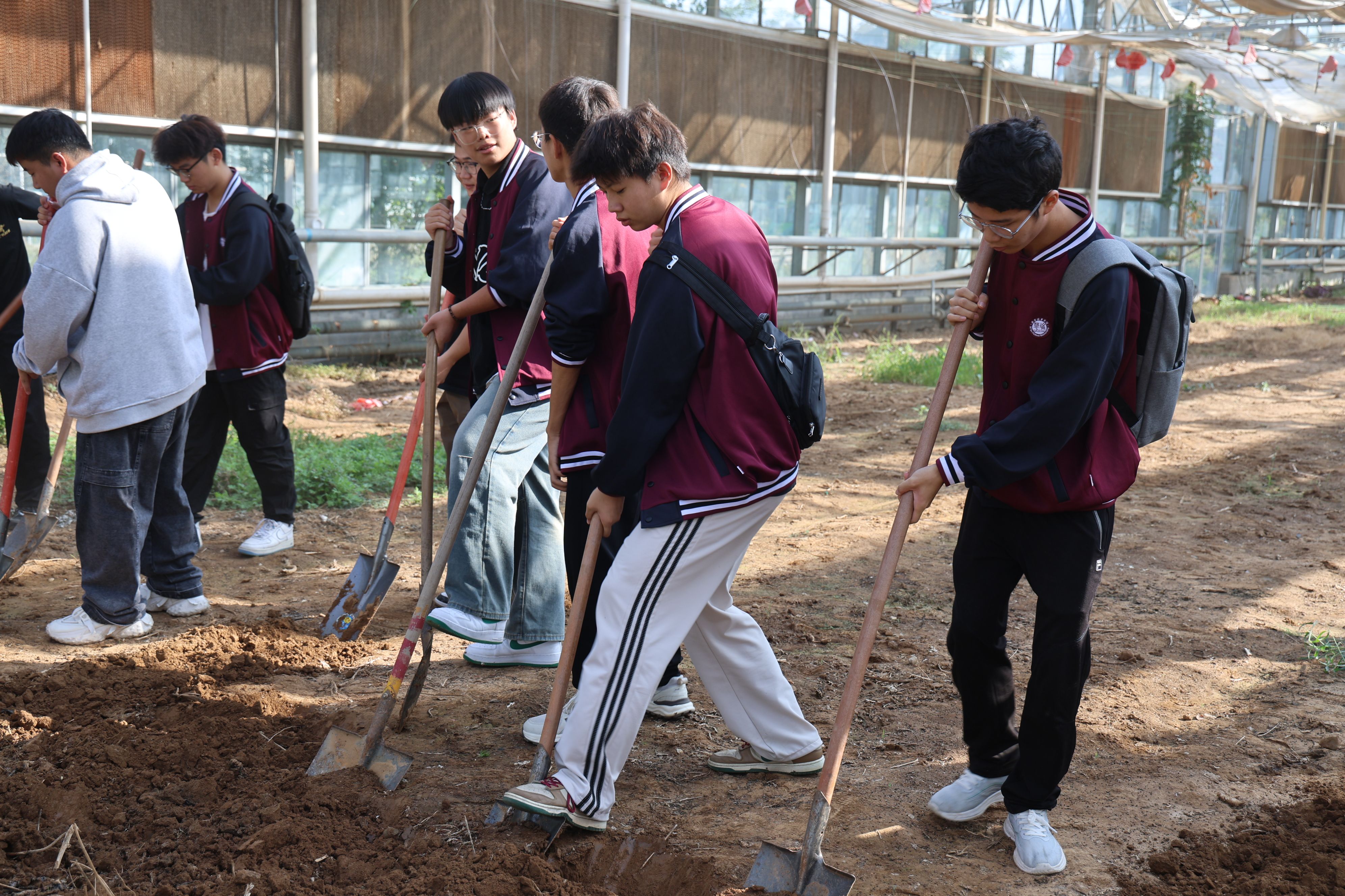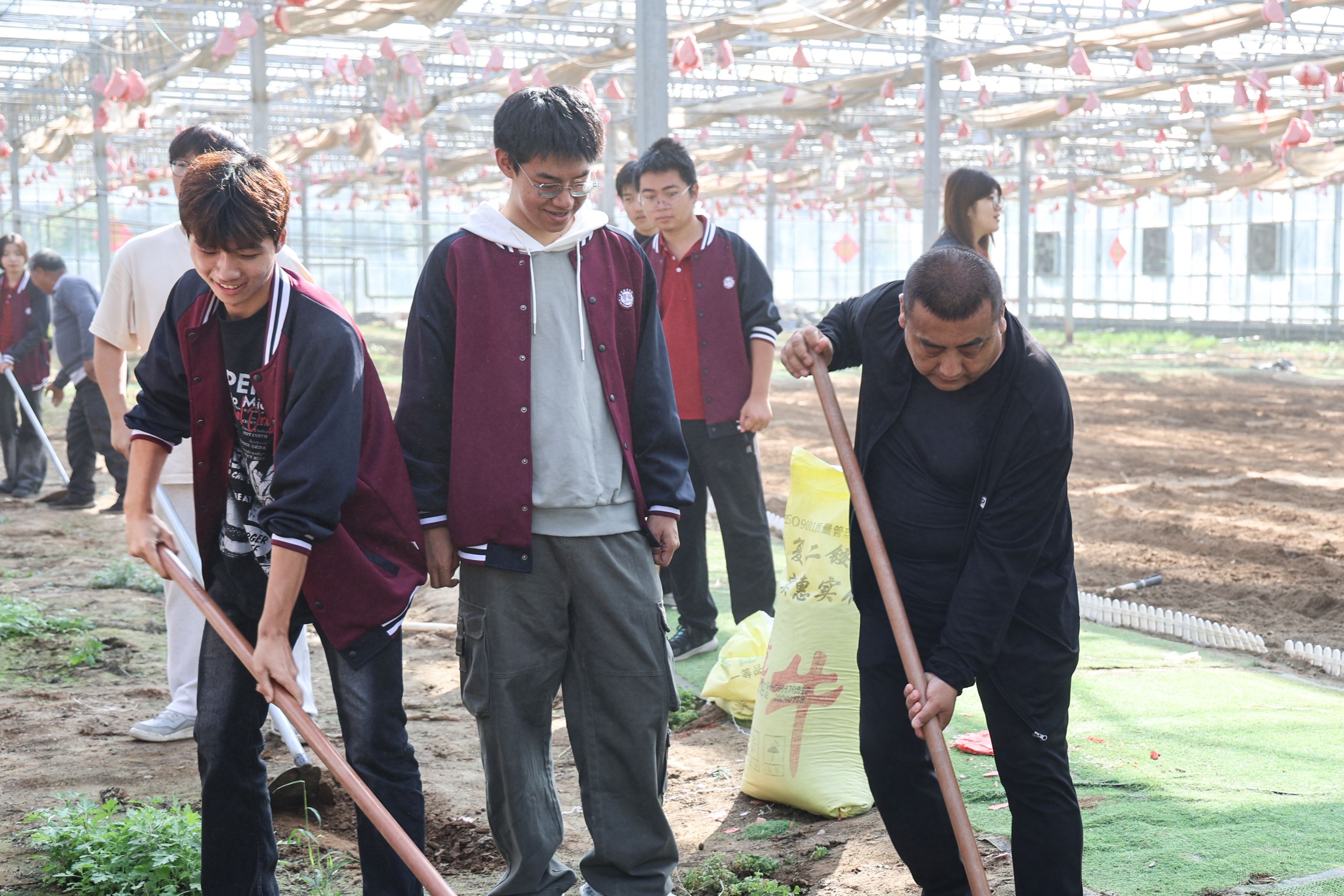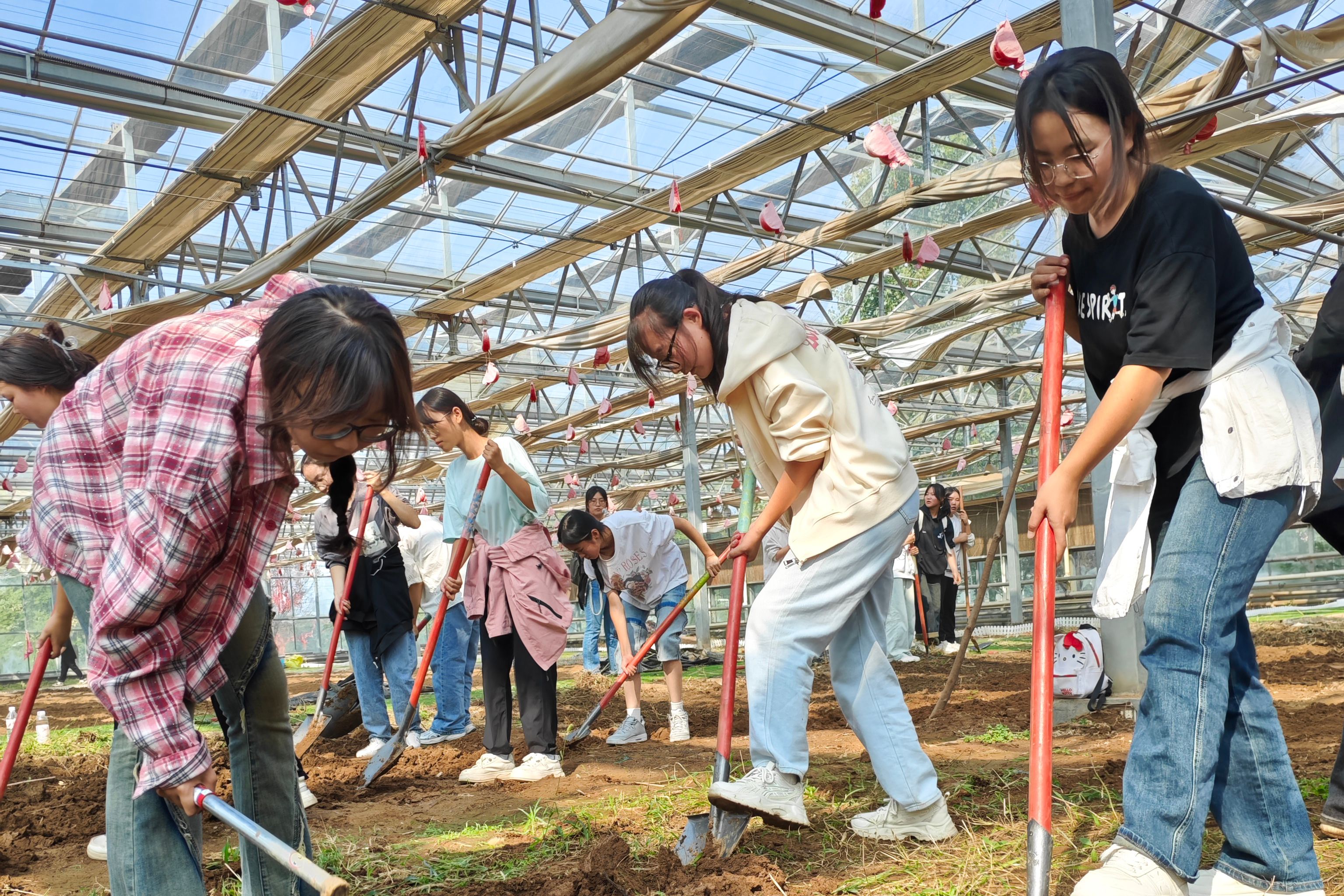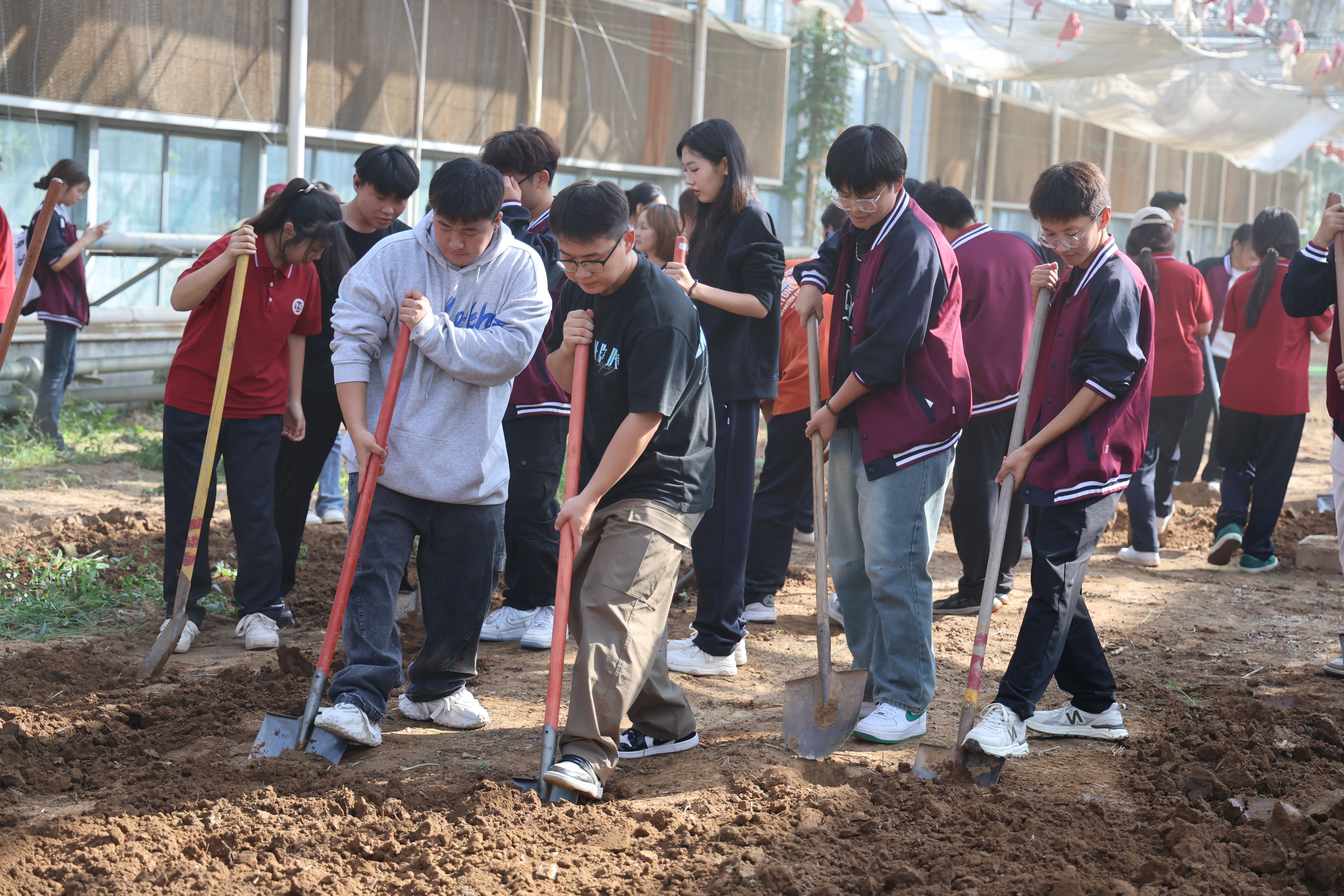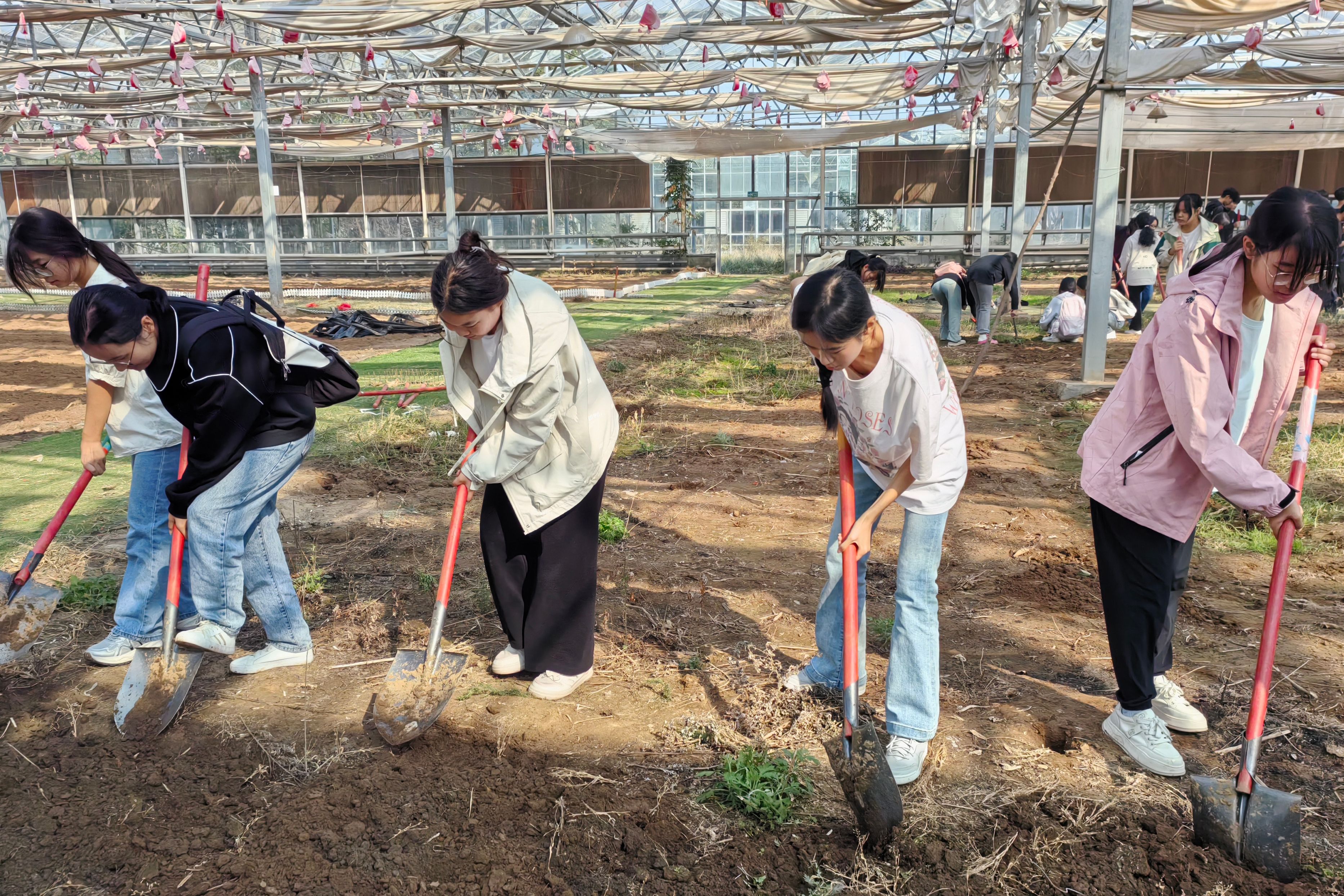 劳动正式开始,同学们纷纷投入到了紧张的劳作中翻土、播种、犁地,每一步都专注而认真。