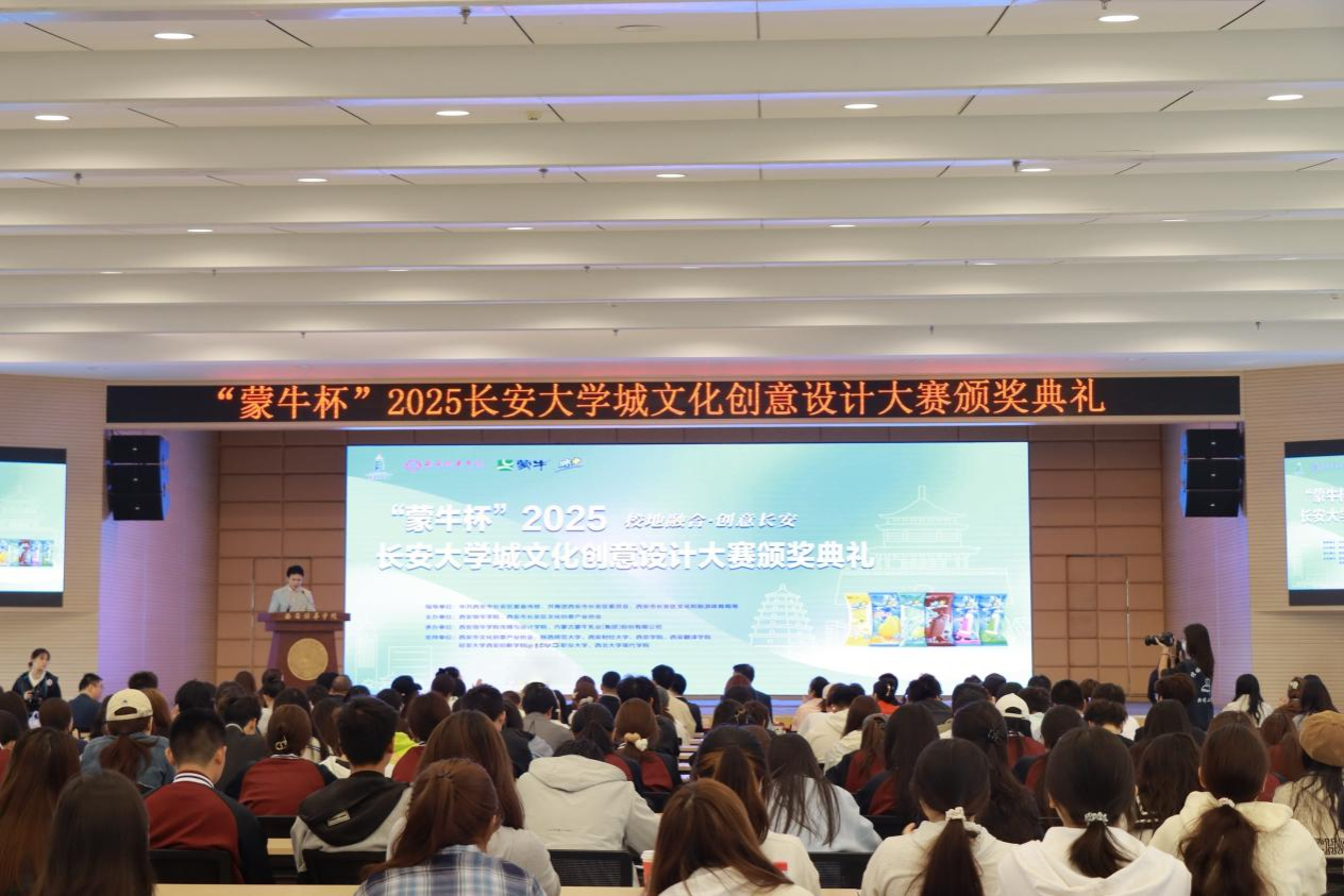 2025年9月25日上午,“蒙牛杯”2025长安大学城文化创意设计大赛颁奖典礼在西安培华学院举行。本次活动由中共西安市长安区委宣传部、共青团西安市长安区委员会、西安市长安区文化和旅游体育局指导,西安培华学院、西安市长安区文化创意产业协会主办,传媒与设计学院、内蒙古蒙牛乳业(集团)股份有限公司承办。来自长安大学城多所高校的师生代表、企业嘉宾齐聚一堂,共同见证这场创意与梦想交织的盛会。