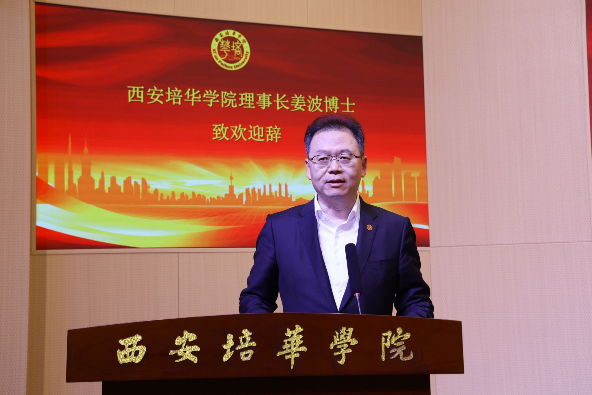 中国银行陕西省分行行长肖达、中国企业文化促进会金融文化工作委员会主任管建华先后致辞。分别从行业发展、金融服务、文化建设等角度,为校企协同育人、金融人才培养建言献策,对西安培华学院在金融教育领域的探索与实践给予高度肯定。