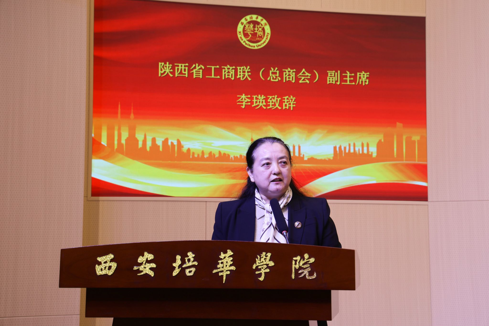 陕西省工商联(总商会)副主席李瑛在致辞中,充分肯定了西安培华学院在金融人才培养与文化传播方面的积极探索与成效。她指出,民营企业的高质量发展离不开金融支持与人才支撑,希望以本届金融文化节为契机,进一步推动政校企协同,促进金融资源与实体经济深度融合,为陕西民营经济发展注入新的发展动能。
