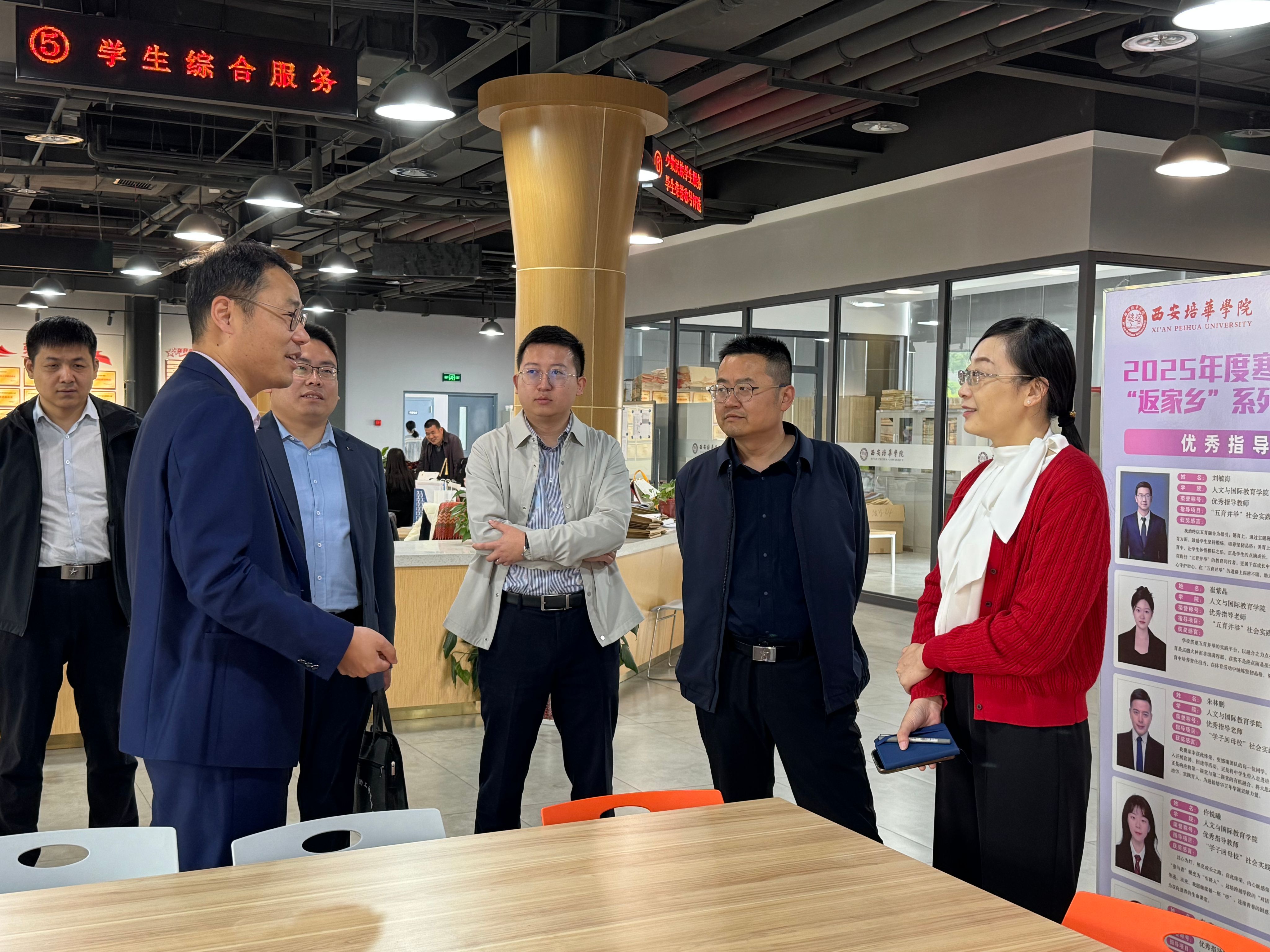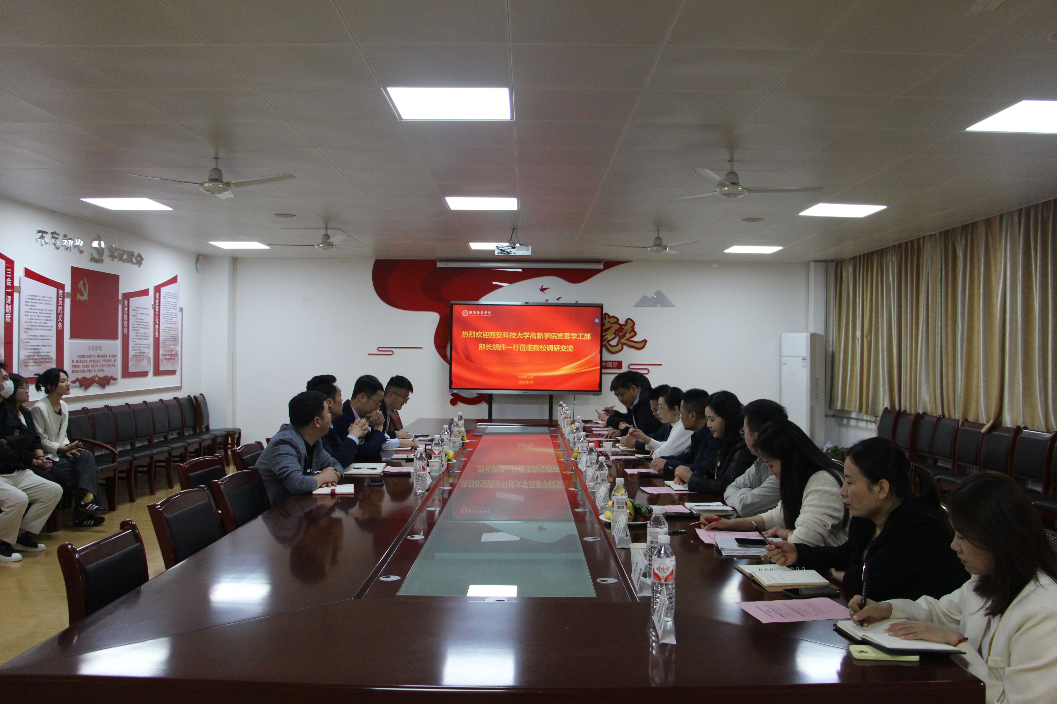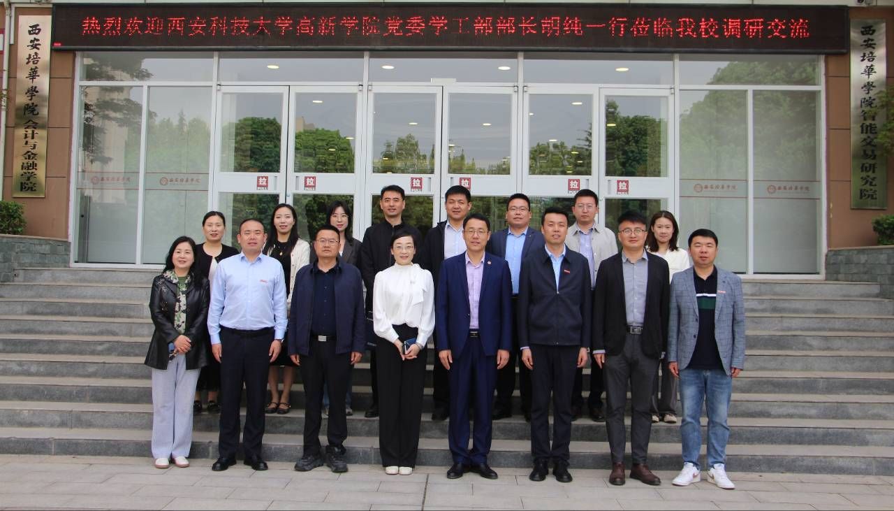 为交流经验、提升学生工作管理能力,优化学生工作管理措施,完善学生工作管理制度。4月22日上午,西安科技大学高新学院党委学生工作部部长胡纯一行12人来校进行调研交流。西安培华学院党委学工部部长权勇太,人文与国际教育学院党委书记、行政副院长南兵,会计与金融学院党委书记、行政副院长刘斌,会计与金融学院党委副书记高乐,智能科学与工程学院党委副书记王伟平等接待了嘉宾一行。