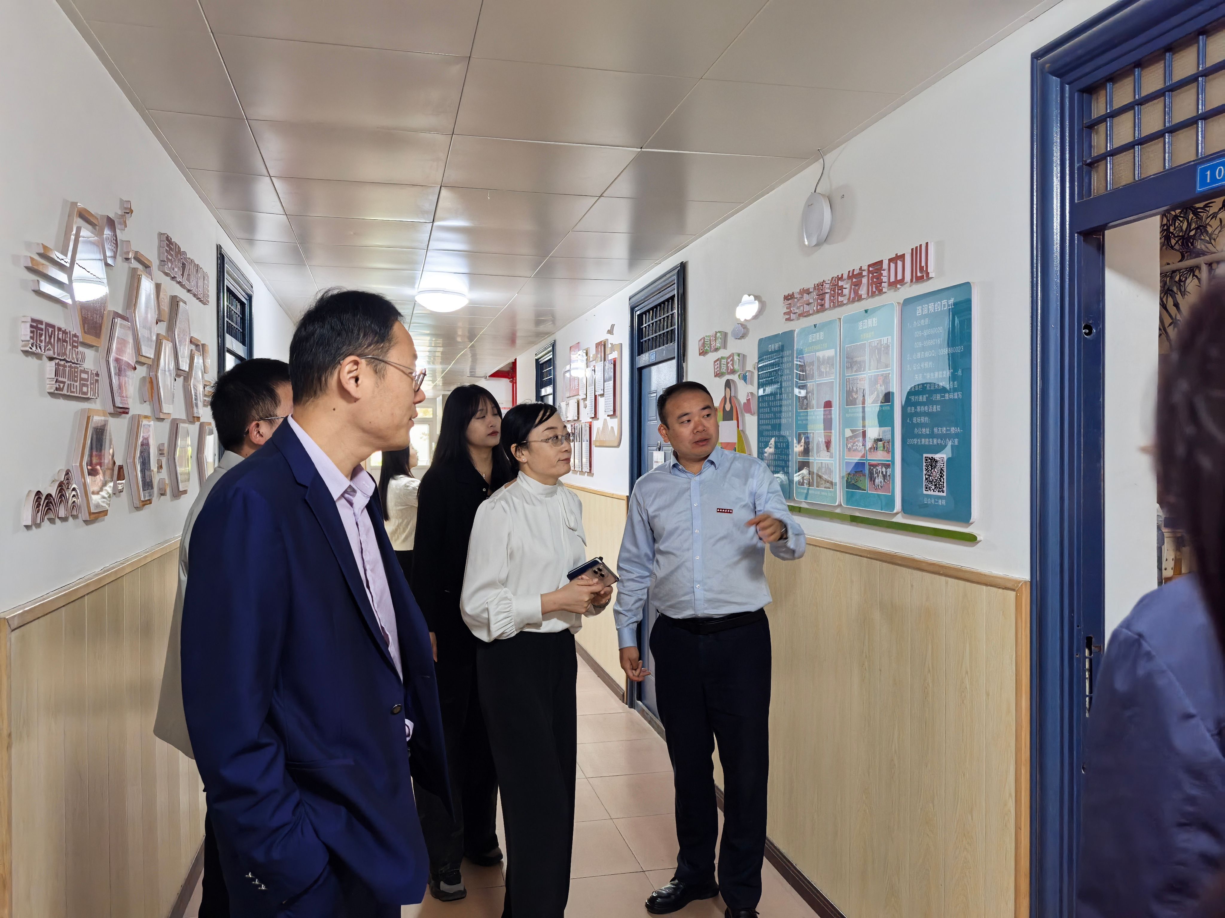 来宾一行参观校史馆、学生服务中心、潜能发展中心及团学组织阵地、“一站式”学生社区