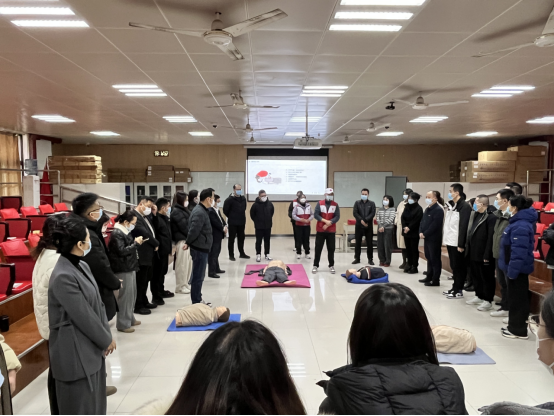 在培训过程中,授课老师结合生动鲜活的实际案例,围绕心搏骤停的识别方法、徒手心肺复苏(CPR)的操作流程、海姆立克急救法的规范操作、自动体外除颤仪(AED)的正确使用、创伤现场急救技术等内容进行讲解,他把理论知识和实际操作相结合,利用模拟人、包扎盒、AED等各类教具进行现场示范,让抽象的知识变得直观可感。
