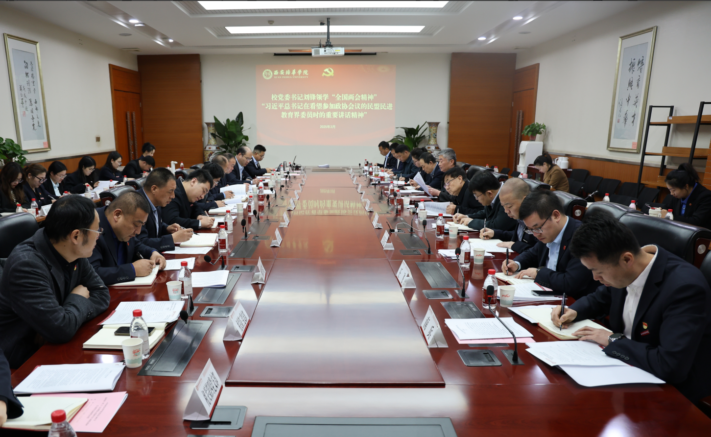 在全国两会胜利闭幕之际,西安培华学院党委中心组严格落实“第一议题”制度,以上率下,突出领导带动、系统联动、师生互动,先学一步、学深一点,通过报纸、广播、电视、网络和手机客户端等多种渠道,收听收看全国两会盛况,关注两会进程,采取线上与线下发力学、紧贴任务深入学、立足岗位践行学等方式,把党和国家取得的伟大成就、最新政策传达到教学一线、广大教职工,迅速在全校掀起学习贯彻全国两会精神的热潮,以“关键少数”带动“绝大多数”,确保学习领会到位,带动党员干部思想跟进、认识跟进、行动跟进,切实把思想和行动统一到两会精神上来,将两会精神转化为推动学校高质量发展的强大动力。