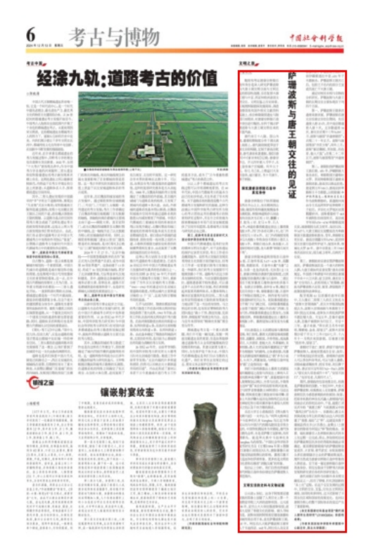 12月13日,学校科研管理中心副主任朱利民的历史考古理论文章《萨珊波斯与唐王朝交往的见证》在《中国社会科学报》第3035期A06版“考古与博物”专版通栏发表(文章系国家社科基金项目“唐代胡人都市生活研究”21XKG004阶段性成果)。这是培华历史考古成果首次在该权威学术报刊亮相。