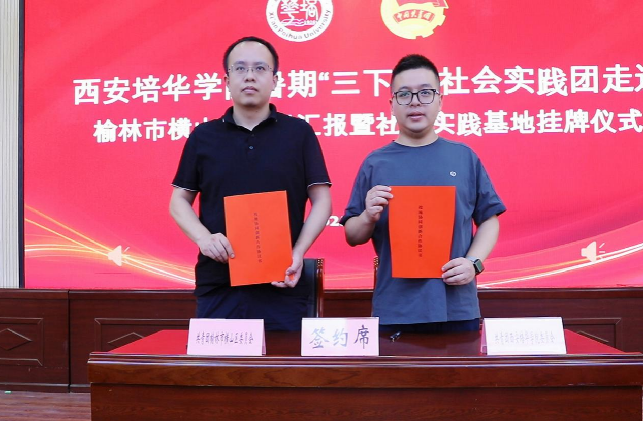 横山区9个镇(街道)挂牌成为“西安培华学院社会实践基地”,主要负责同志获聘为西安培华学院校外实践指导导师。学校团委与横山团区委签署校地合作框架协议,为未来在人才培养、社会实践、志愿服务、文化交流等领域的深度合作奠定基石。