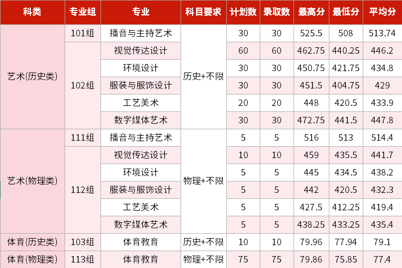 今年是陕西省全面实施新高考的第一年,学校共设置10个专业组,首次投档中,所有批次的所有专业组均实现开档即满额录取,艺术体育类本科提前批。普通类本科所有专业组投档录取最低分数均超我省普通本科线。