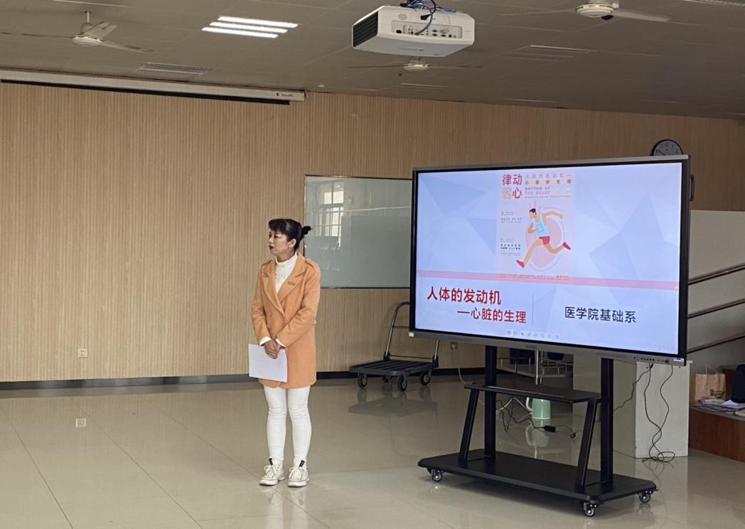 首先由医学院教学副院长王菊宁副教授致辞,并做主题介绍。王院长强调心脏对人体最重要的作用就在于它是人体的血液运输泵,就像一个水泵,能够推动着血液在全身流动,为机体的各个重要脏器提供氧气和营养物质,同时还能把代谢的废物如二氧化碳等通过肺和肾脏等器官排出体外。它是生命的原动力。现如今,患心脏疾病的人越来越多,所以,今天邀请大家一起来了解心脏的生理结构,熟知心脏的工作过程,掌握心脏常出现的生理反应,做好心脏的保护措施。