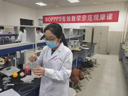 观摩课上,葛维娟老师向大家介绍了“BOPPPS有效教学模式”及其包含的六大教学结构,并基于BOPPPS教学模式,开展护手霜制作教学内容,向大家清晰明了地展示了BOPPPS教学模式所包含的六大结构在课堂上的具体应用。