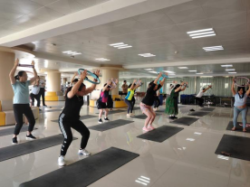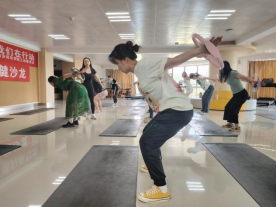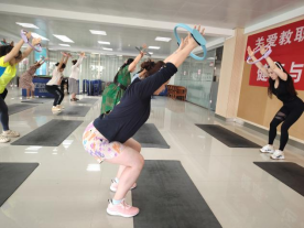两位专业教练带领大家进行了一场别开生面的普拉提训练,通过一系列精准的动作,帮助教师们放松紧张的肌肉,改善身体姿态。