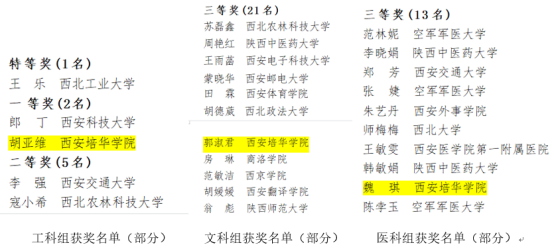 根据陕西省总工会、陕西省教育厅《关于公布第五届陕西高校青年教师教学竞赛结果的通知》,我校智能科学与信息工程学院教师胡亚维荣获工科组一等奖,人文与国际教育学院教师郭淑君荣获文科组三等奖,医学院教师魏琪荣获医科组三等奖。