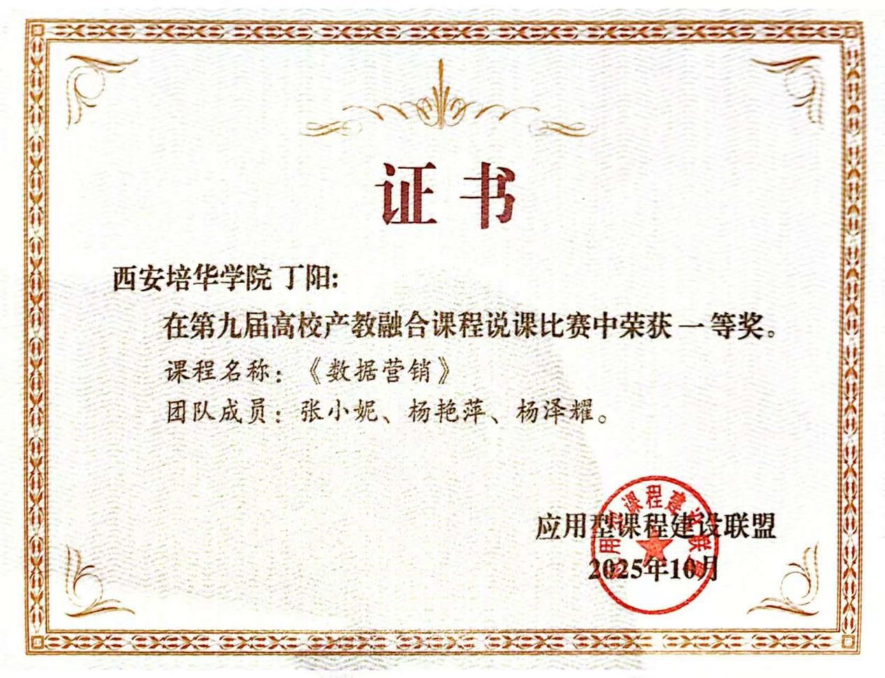 近日,第九届高校产教融合课程说课比赛在湖南长沙圆满落幕。我校未来产业学院副院长丁阳领衔的《数据营销》课程团队,凭借创新的教学设计和出色的现场表现,从全国40余支参赛队伍中脱颖而出,以总分第一的优异成绩荣获一等奖,充分展现了我校教师在产教融合课程改革中的卓越成果。