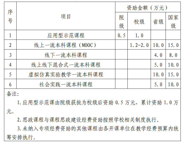 1. 学校对立项的各类课程按级别提供一定的建设经费支持。
