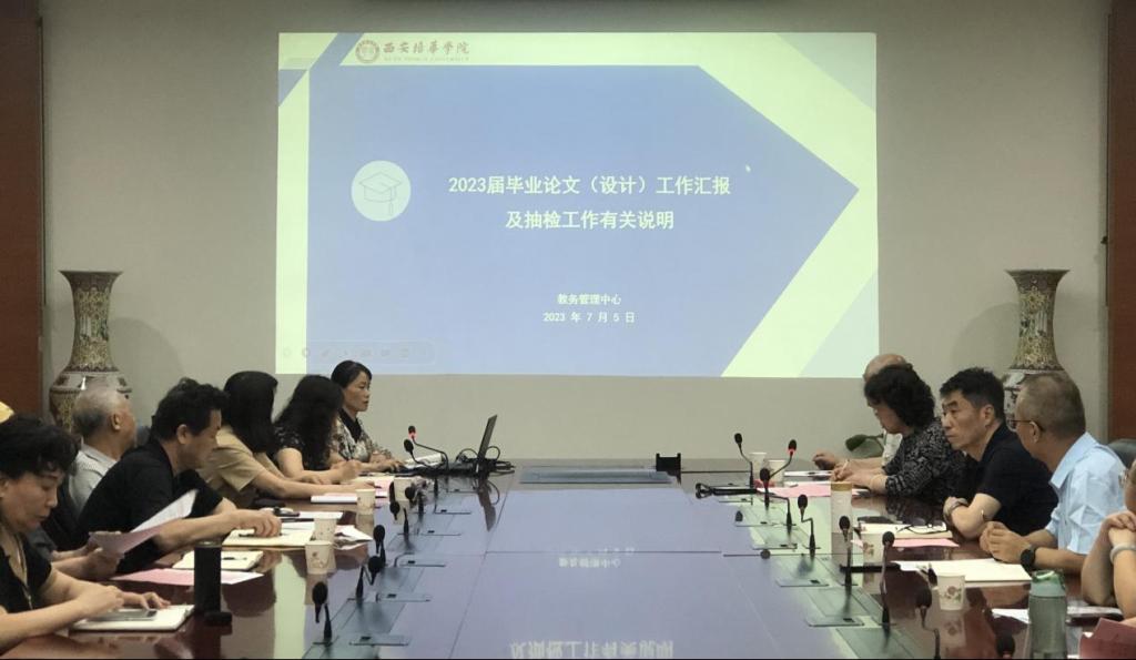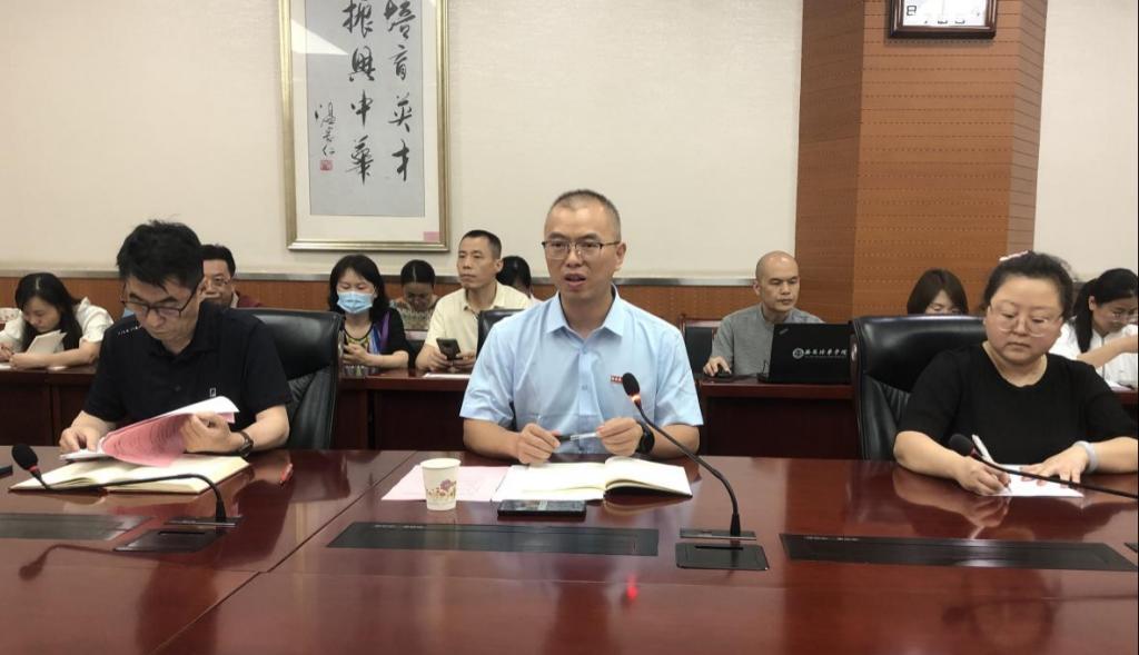 7月5日下午,学校在明德楼第一会议室组织召开了2023年度毕业论文(设计)抽检工作专题会议。教务管理中心主任铁卫、副主任刘斌、学校督导专家组长史晓眉、各二级学院论文(设计)工作主管领导、系主任、专业带头人、负责论文工作的教科研干事及教师代表共计60余人参加了本次会议。